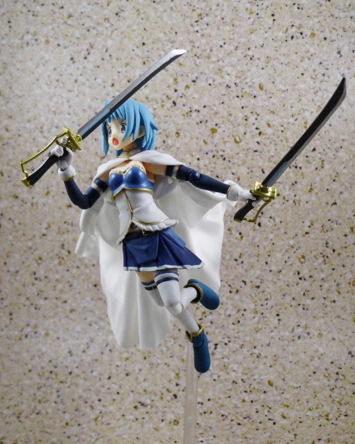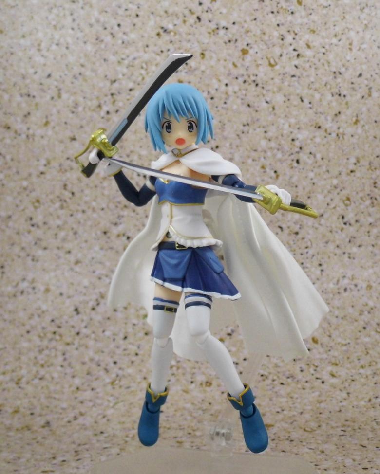 Sayaka's figma comes resplendent with eight of her signature swords, ten hand options, three different facial expressions and two capes (one soft goods, and one of rigid plastic). I thought she would turn out to be a little lackluster due to some design choices involving her skirt and bloomers, but she can still pull off some great poses. I am loving the soft goods cape and she's fun to fiddle with once you get started.