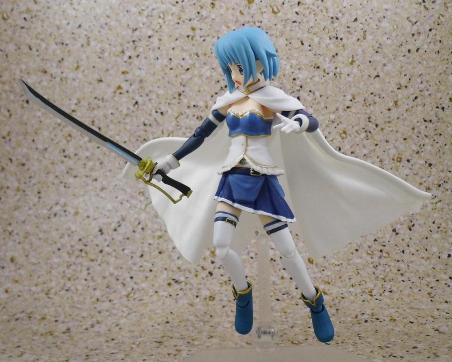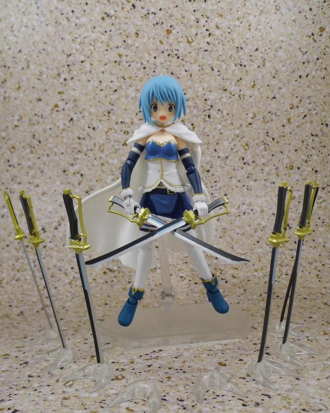 Sayaka's figma comes resplendent with eight of her signature swords, ten hand options, three different facial expressions and two capes (one soft goods, and one of rigid plastic). I thought she would turn out to be a little lackluster due to some design choices involving her skirt and bloomers, but she can still pull off some great poses. I am loving the soft goods cape and she's fun to fiddle with once you get started.