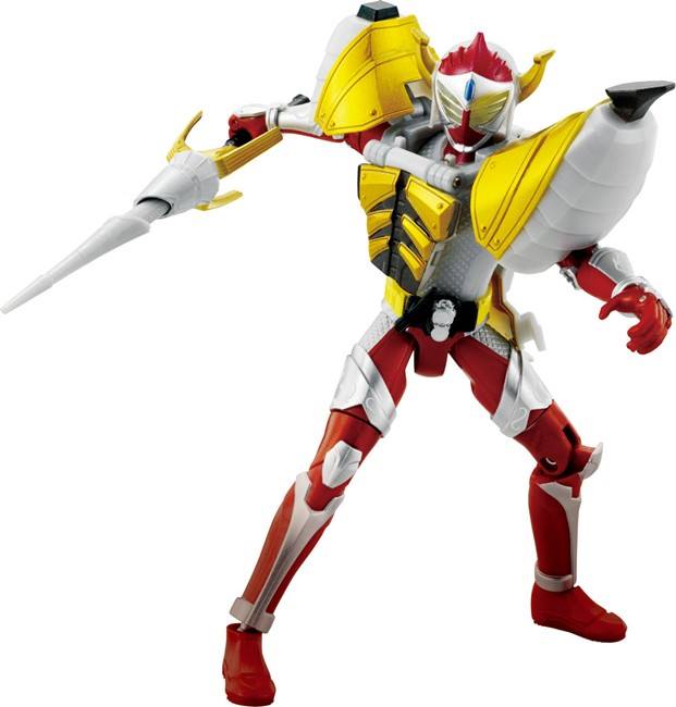 This'd be a pic of the gimmick line figure for Baron, which shares with us how he looks when nak--without banana armor. I'm sure someone out there is into this revelation! What it tells me is this; it's possible the armors will in fact be interchangeable since Gaim's figure has the same sort of build and helmet style, nothing exclusive engineering-wise from what I can tell. I'm interested to see the rest.