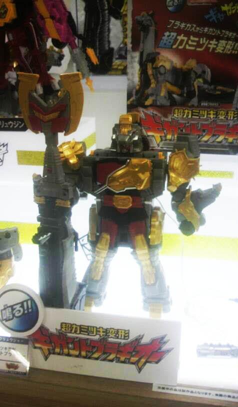 The final DX mecha for Zyuden Sentai Kyoryuger, the mighty Bragigas, won't be out until October. But we've just gotten an early look at Bragigas, his robot mode Gigant Bragioh, and his combined form Gigant Kyoryuzin at Tokyo Toy Fair! Credit: Toku-Insider Blog