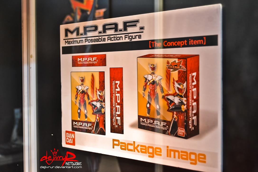 On display is just about anything you can imagine for Bima. Role play masks changers & weapons like Bima Changer and Helios Sword, DX action figures & mecha like Bima God Helios and Azazel and much more! Curiously there also appears to be a prototype of a highly articulated figuarts-esque Bima on display. The Maximum Poseable Action Figure or MPAF Bima looks close in both design and quality to Bandai's S.H.Figuarts line. If nothing else the figure looks very impressive for a brand new line! Full Credit to and photos provided by dejivruR Photoworks Blog