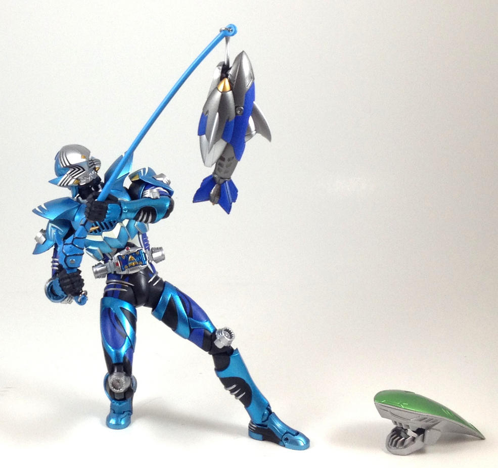 And as I said, I took some silly pictures of Abyss using every blue weapon or accessory I had at my easy disposal. Except Kuuga's Dragon Staff, I forgot to use that one.