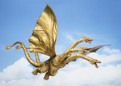 Bandai's Tamashii website has updated with official images of the upcoming S.H. MonsterArts King Ghidorah. Due for the release in September, the king of the monster's three-headed rival is priced at 9,800 yen and comes packed with his trademark electric-bolt breath effect parts!