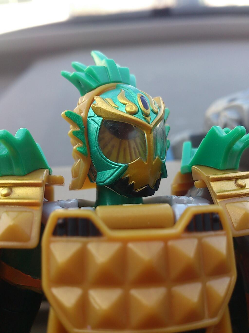 Ryugen looks beautiful alone without his Armor. The yellow, the green, the Gi motif of his under-armor, it's all perfect. Grape-Kun is quickly becoming my favorite of these awesomes.