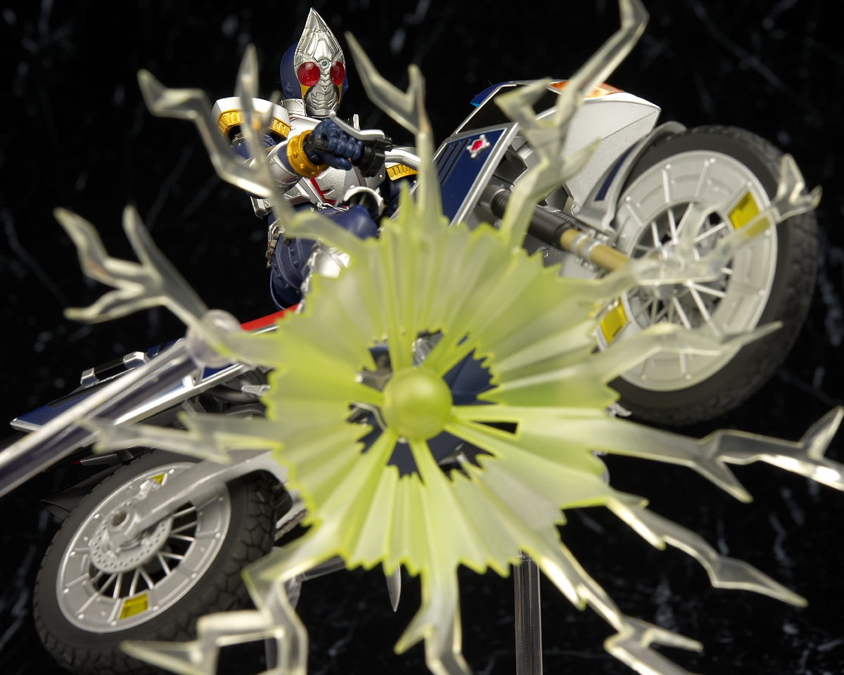 The long awaited SH Figuarts Blue Spader from Kamen Rider Blade has been released in Japan! Thanks to hacchaka we have some images of this bike in hand. The Blue Spader is intricately detailed and complements the SH Figuarts Kamen Rider Blade figure well.