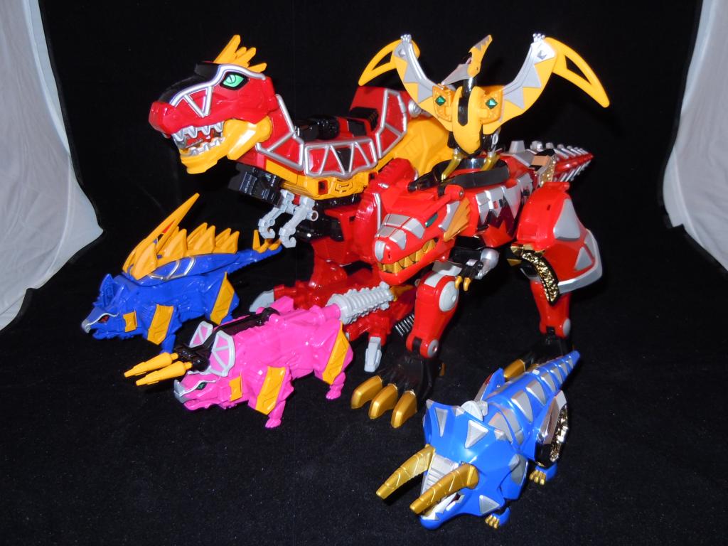 EDIT: Here they are: they look pretty good together, I think, they have very similar transformations, although Kyoryujin is much, much bigger (I'm pretty sure Kyoryujins the biggest main mecha ever). Abaranger has a lot more realistic looking dinosaurs, but I think I like Kyoryuger's better! I personally find them funner and I prefer the sound gimmicks to the motor gimmicks, but its all up to preference, really. Last edited by Starscream Gaga; 11-14-2013 at 01:23 AM.. |