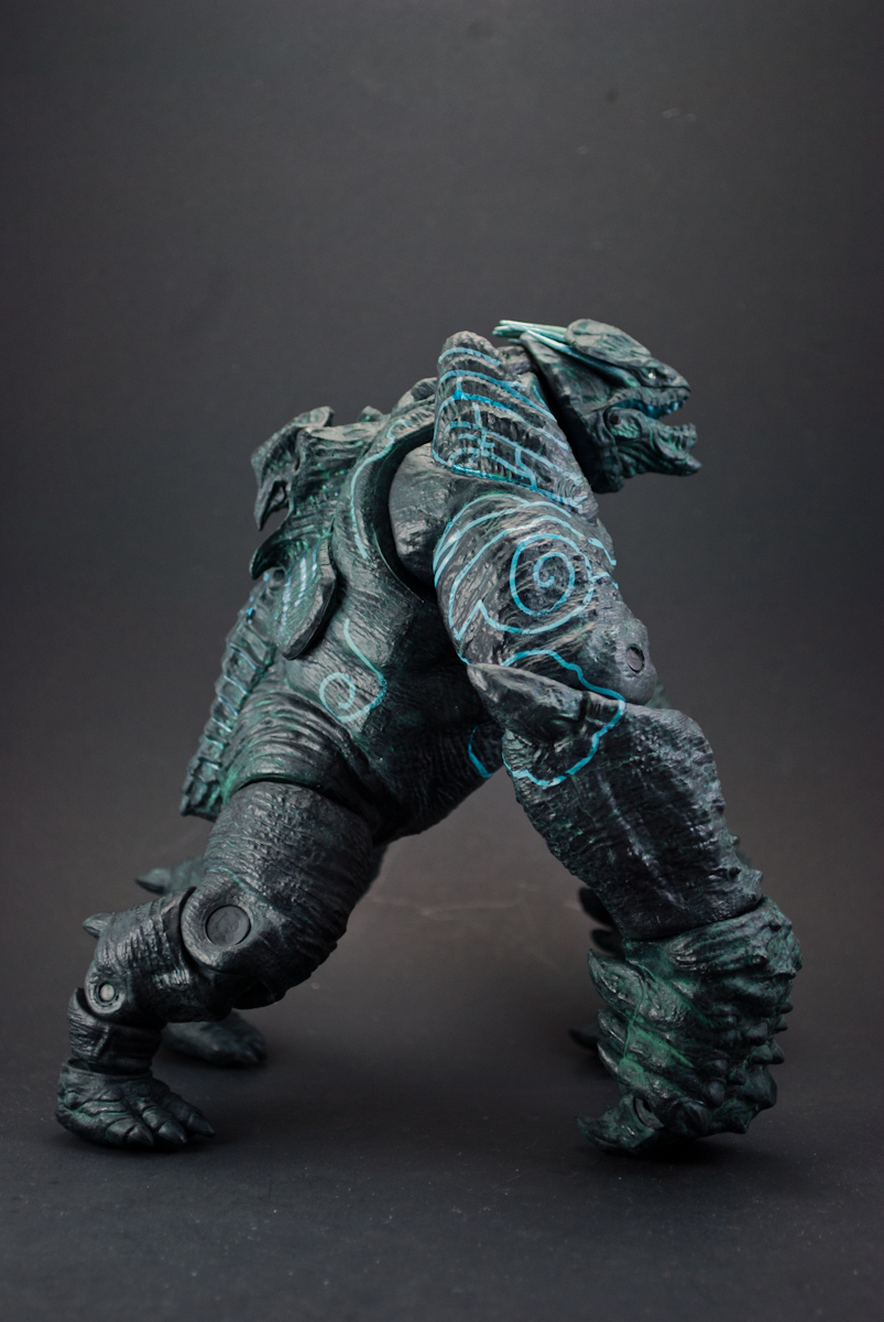 The designers at NECA accurately capture the look and bulk of Leatherback with the figure released in Series 2 of their Pacific Rim line. The figure stands at approximately 8 inches with it's 'hunched' posture and has a surprising 24 points of articulation. This includes individually moving claws, ankles, and a hinged jaw. Leatherback weighs in at a ridiculous 1 pound, 6.5 ounces, over 3 times the weight of Gipsy Danger. Despite the weight and size of each arm, they can still be posed in a variety of ways (given your figure has tight joints). Check out the gallery after the jump! Want TokuNation.com updates on the go? "Like" us on Facebook and follow us @tokunation on Twitter!! |