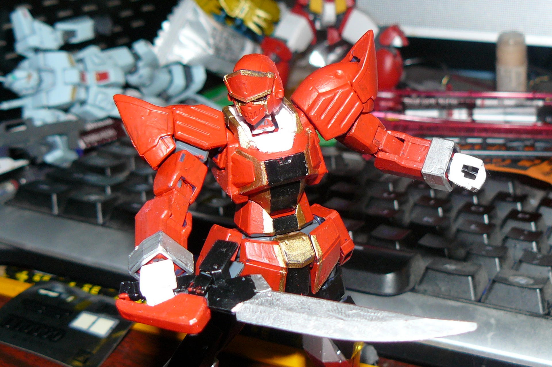 Quick update: Yellow is almost done. all that is really needed is A) gold detail B) modified gun and sword to fit in holding-things hans and C) a jackedge head. I have something on her now that i have dubbed the bat-head that may or may-not be in the future depending on how many jackedges fall to the might of the gokaigers.