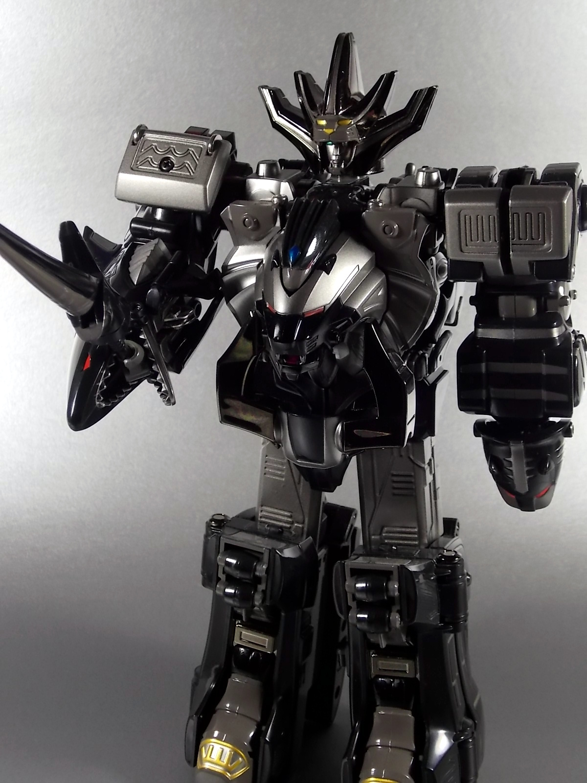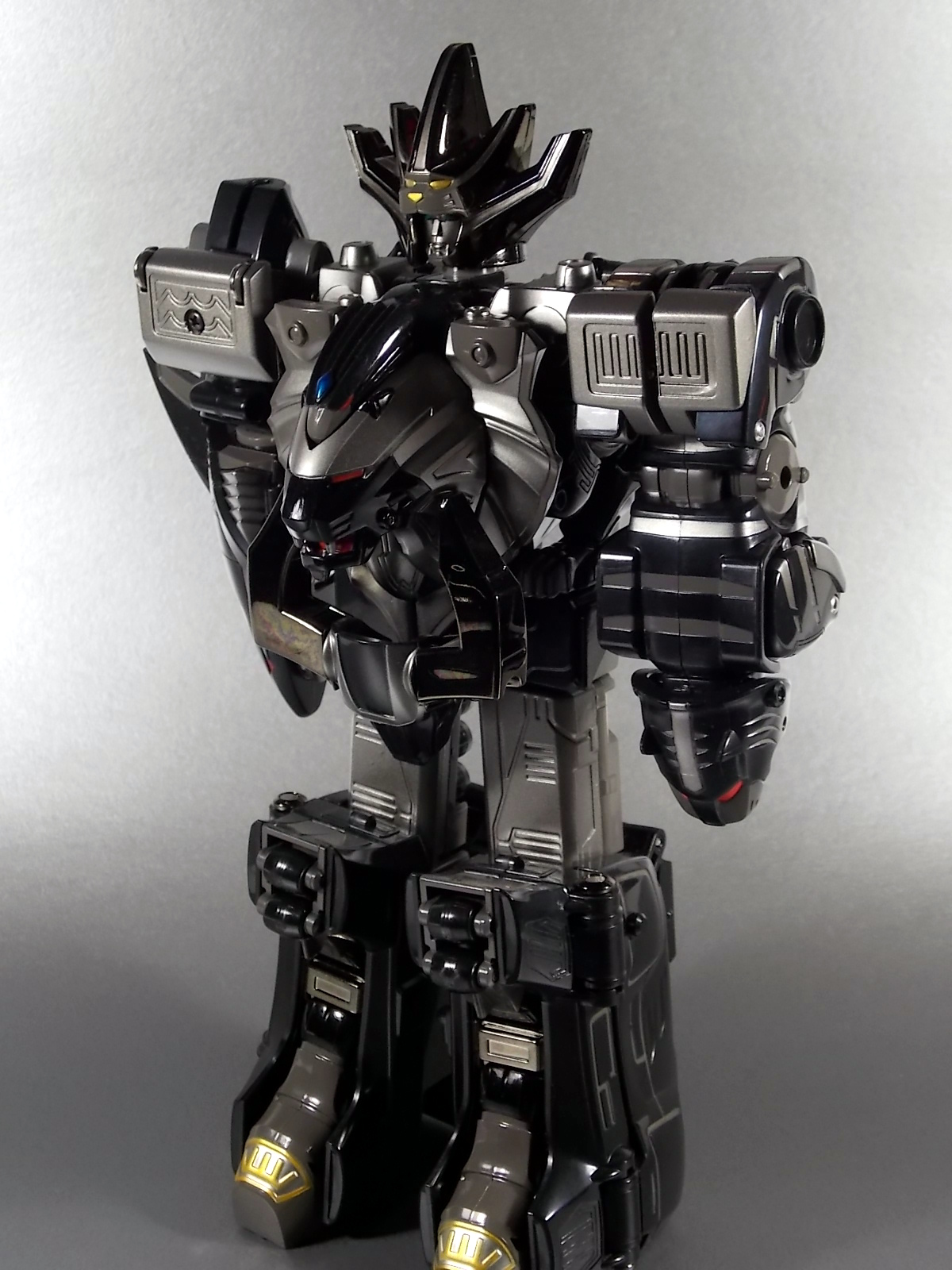 DX Black Gao King is a special repaint of the standard Gao King set done up in, you guessed it, black/silver, packed in a black/white version of the normal Gao King box. The set has a nice sleek uniform color scheme that's very pleasing to the eye. Though if you already have a normal Gao King this may not be a set you'd want to double up with. The Black Gao Elephant released with the TRU Gao Knight set is also a perfect addition to this set allowing you to make a full on Black Gao King Sword & Shield! Of course this set is part of a long long tradition of black repaints not only for sentai, but for mecha shows in general. The first black edition sentai robo being the Black Daizyujin later altered for release in the US as the Black MMPR Megazord. Want TokuNation.com updates on the go? "Like" us on Facebook and follow us @tokunation on Twitter!!