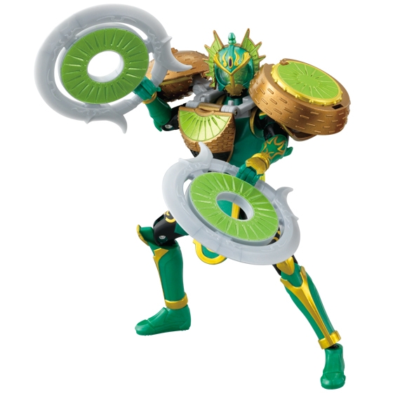 Arms Change 06, contains the Mango Arms and Kiwi Arms, used by Kamen Rider/Armored Rider Baron and Kamen Rider/Armored Rider Ryugen respectively. Their main weapons are the Mango Punisher club and Kiwi Gekiren chakrams. The set will be released December 5 (same as Zangetsu) for 1890 Yen. Source: Cybergundam of Taghobby.