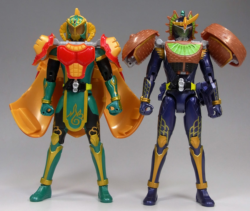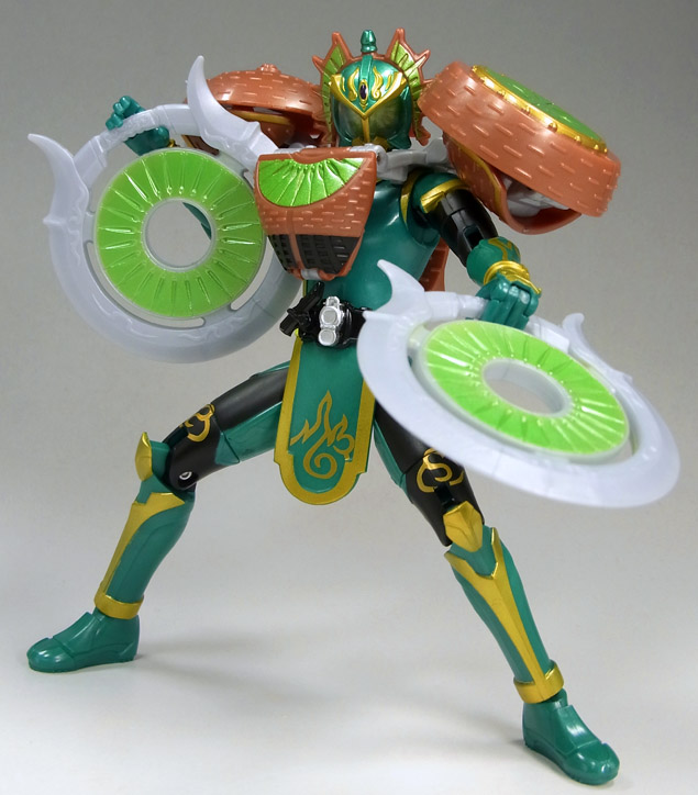 The eagerly anticipated Arms Change AC06 Mango Arms And Kiwi Arms set has been released in Japan! Thanks to photo reviewed gamu-toys, we have a select batch of images to show you. Most of the images show the Mango Arms set on Kamen Rider Baron and the Kiwi Arms on Kamen Rider Ryugen. There is a shot however, of the Mango Arms on Ryugen and the Kiwi Arms on Kamen Rider Gaim.