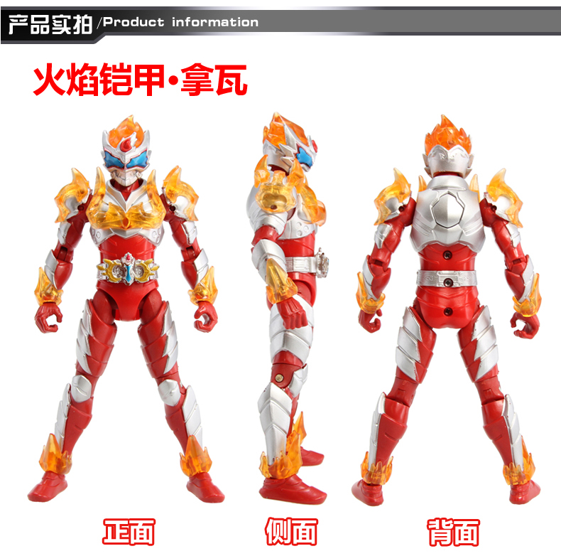 This time, all armors are based on elements of fire (Lava), wind (Tornado), water (Tsunami), earth (Cliff) and aether (movie character). TV series will air this December, and a movie next year. Yes, there surely will be a movie this time. The filming was already completed; It is now in post-production. You might notice the lock on the side of his head. This helmet was for roadshow, but the rest is for shooting. The belt is fully functional: turn the key can trigger spinning and lights.