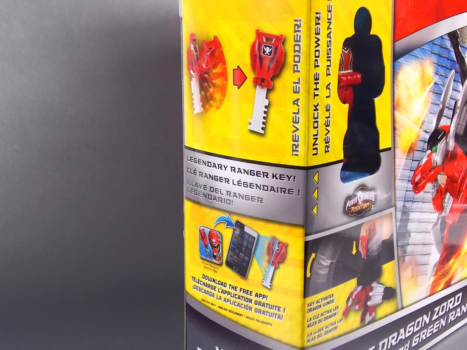 Todays offering from Bandai of America is the Mystic Dragon Zord, a tribute to Power Rangers Mystic Force. The basis for this figure is the DX Gokai Machine Magi Dragon from Kaizoku Sentai Gokaiger, itself an homage to Mahou Sentai Magiranger. This figure offers up a much more simplified version of the dragon's design. Quite a few paints apps are missed and the figure has been scaled down to be more in line with the equally smaller Legendary Megazord. Though it loses out in paint and a bit of complexity there is some added interaction with the included Red Mystic Ranger Key. On the original Magi Dragon you could pull back on the spring loaded wings to flap them. Here you can insert the ranger key into the dragons back while the head is folded in to spring it into place as well as flap the wings. As an individual zord, the Mystic Dragon compromises the standard appearance of it in footage a bit by flipping the way the tail attaches and by removing some key paint apps from the wings. The combination it features with the Legendary Megazord likewise makes a few compromises but this set is highly compatible with the Zord Builder system so you can make a plethora of new combos, some of which I've goofed around with here. The instructions don't actually specify a name for the combined mode but based on the original Gokaiger version being known as Magi Gokai Oh it's safe to assume we could call this one Mystic Legendary Megazord. The included Green Super Mega Ranger is molded in one color with a few paint apps and is a totally static figure which can peg onto the dragons back. Overall this set is a decent buy if you can find it at regular retail price. It's definitely intended for a more budgeted collector but will fit right in with any Zord Builder collection. The Mystic Dragon used for this gallery was found locally at Walmart for $14.95. Start checking your stores now!