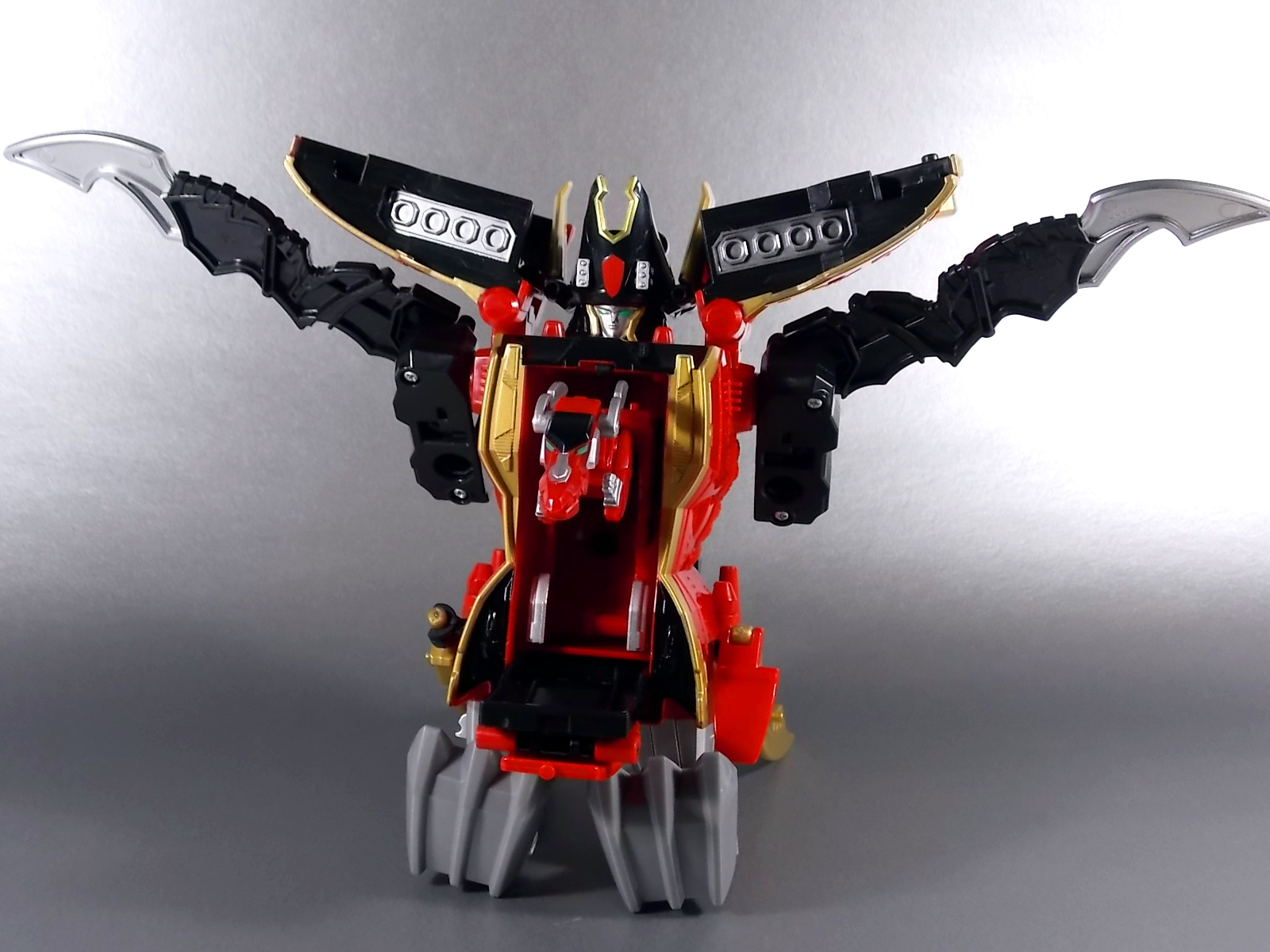 I like the Megazord of this more because well the Megazord mode. The dragon feet actually go over the entire foot unlike the Japanese version where they just were tiny.