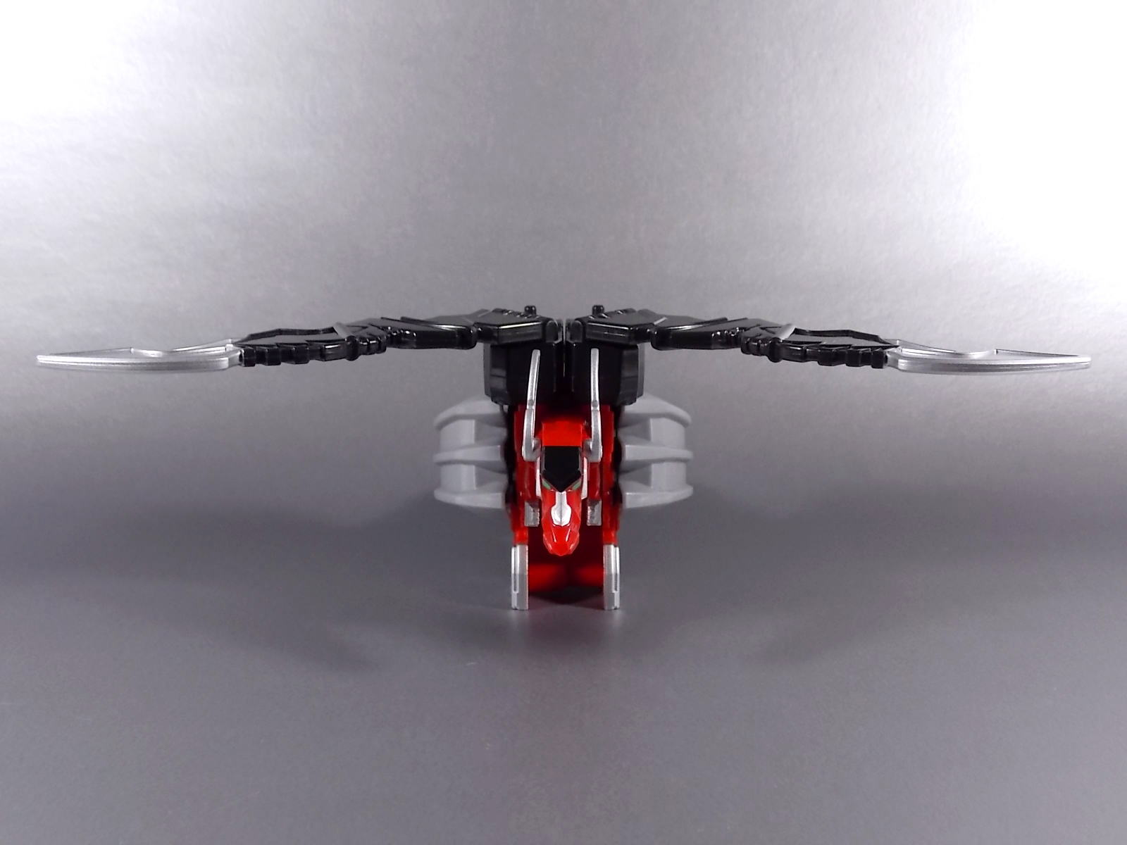 Todays offering from Bandai of America is the Mystic Dragon Zord, a tribute to Power Rangers Mystic Force. The basis for this figure is the DX Gokai Machine Magi Dragon from Kaizoku Sentai Gokaiger, itself an homage to Mahou Sentai Magiranger. This figure offers up a much more simplified version of the dragon's design. Quite a few paints apps are missed and the figure has been scaled down to be more in line with the equally smaller Legendary Megazord. Though it loses out in paint and a bit of complexity there is some added interaction with the included Red Mystic Ranger Key. On the original Magi Dragon you could pull back on the spring loaded wings to flap them. Here you can insert the ranger key into the dragons back while the head is folded in to spring it into place as well as flap the wings. As an individual zord, the Mystic Dragon compromises the standard appearance of it in footage a bit by flipping the way the tail attaches and by removing some key paint apps from the wings. The combination it features with the Legendary Megazord likewise makes a few compromises but this set is highly compatible with the Zord Builder system so you can make a plethora of new combos, some of which I've goofed around with here. The instructions don't actually specify a name for the combined mode but based on the original Gokaiger version being known as Magi Gokai Oh it's safe to assume we could call this one Mystic Legendary Megazord. The included Green Super Mega Ranger is molded in one color with a few paint apps and is a totally static figure which can peg onto the dragons back. Overall this set is a decent buy if you can find it at regular retail price. It's definitely intended for a more budgeted collector but will fit right in with any Zord Builder collection. The Mystic Dragon used for this gallery was found locally at Walmart for $14.95. Start checking your stores now!