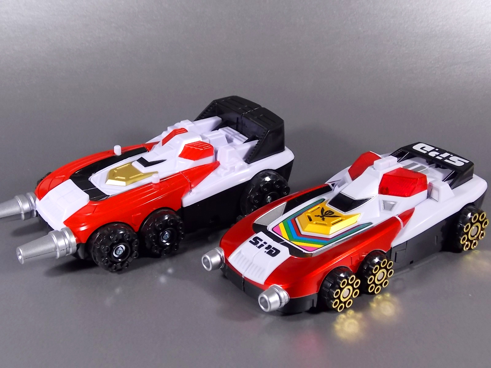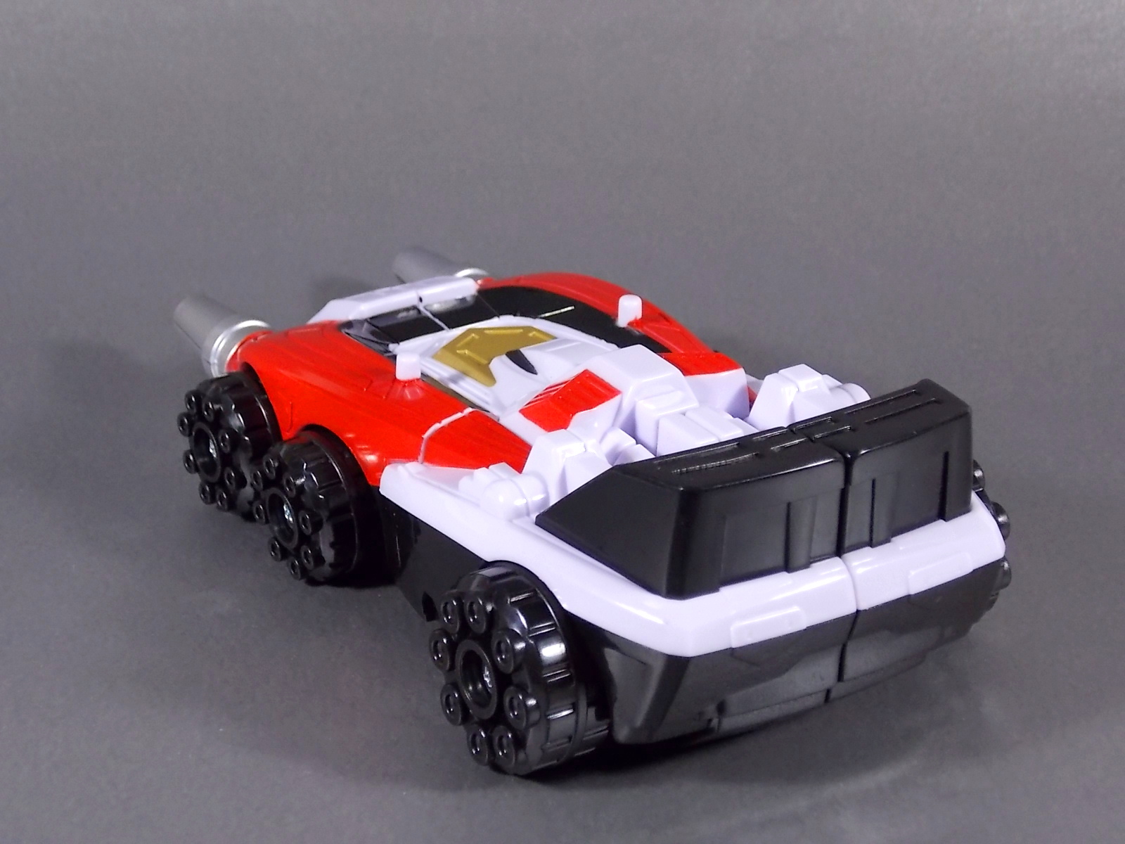 Tokunation is back with another gallery from Power Rangers Super Megaforce! And today we're looking at the Delta Runner Zord! The Delta Runner is a Bandai of America interpretation of the Pat Striker from Kaizoku Sentai Gokaiger. Itself an homage to the original Pat Striker from Tokusou Sentai Dekaranger. Bearing in mind that Dekaranger was adapted for the US as Power Rangers SPD that's what the BOA version of the toy represents. The box itself even features the logo of SPD. The Delta Runner is a slightly upscaled version of the Pat Striker. However what it makes up for in size, it loses in paint applications. Most of the identifying features of the Pat Striker get lost in the transition. Both SPD logos, the Gokaiger crest, the painted wheels, and the Gokai colors on the hood. Also removed are the electronic lights & sounds. To add play value for these removed features the Delta Runner features the popular Zord Builder system. Though the vehicle only has two male Zord Builder pegs it has a grand total of 10 female connectors through out, allowing for a bit of mix and match play with other compatible sets. A by product of these ports is an official yet unnamed mode for the vehicle. A "battle station" mode which sees the car rearranged into a missile firing turret. Included with the Delta Runner are 2 missiles, neither of which can be stored when not in use. As pressure launch weapons they require you to use the included SPD Red Ranger Key in the slot on the back of the turret to "activate" the firing mechanism. Also included is a mini-figure of the Super Mega Blue Ranger. This mostly single colored figure is solid PVC and features no articulation. But just as with the Super Mega Green Ranger included with Mystic Dragon, it can peg onto the vehicle for added play. To combine with the Legendary Megazord this figure splits into 5 parts just as the Pat Striker did. However since the BOA line does not feature the opening compartment gimmick, these parts cannot be stored inside the Legendary Megazord when not in use. On the BOJ release all 5 compartments can be closed to hide the entire combo. But here, the Legendary Megazord's chest isn't deep enough to even allow for it to be concealed. The chest piece itself has no locking mechanism whatsoever, and actually tends to fall out all on it's own. It should also be noted that nowhere on any packaging at all is this combination given an official title, just like the one with Mystic Dragon. Considering it's Japanese counterpart is known as Deka Gokai Oh, it's a safe placeholder to call this one the Delta Legendary Megazord. The other parts can be oriented in roughly the same place they would be on the actual mecha thanks to the numerous Zord Builder ports on the Legendary Megazord. And in fact the arms components can still be wielded as pistols. This figure attempts to be a cost effective alternative to it's BOJ counterpart and succeeds for the most part. Suffering only a bit from it's design. The most unfortunate part being that it doesn't have nearly enough male Zord Builder pegs to give it the play value it needs. Otherwise this is a pretty fun toy for $14.95. The Delta Runner used for this review was purchased at a Walmart in Lexington, Kentucky.