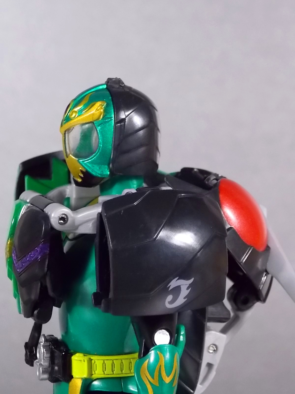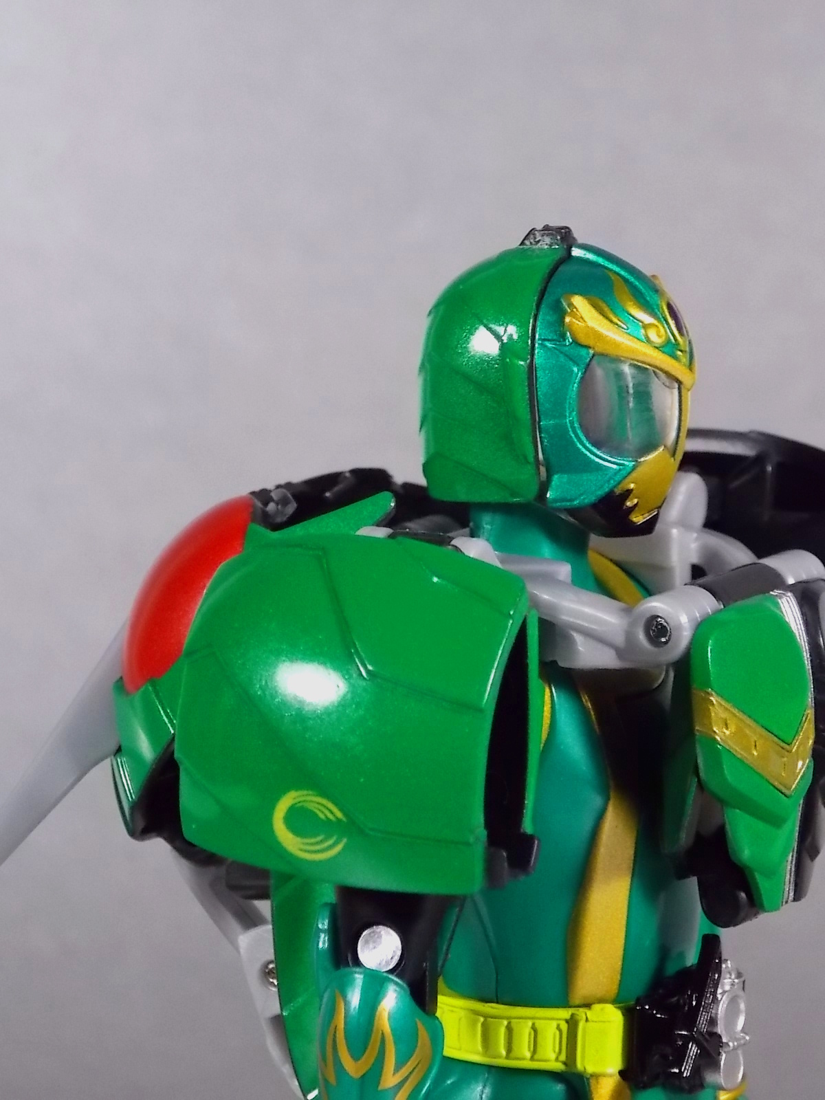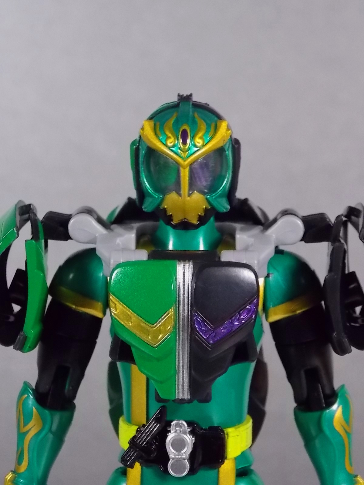 This power-up is exclusive (so far) to the Kamen Rider x Kamen Rider Gaim & Wizard: The Fateful Sengoku Movie Battle. The set itself comes with the 4 Legend Rider themed Arms and new helmet/visor sections for each rider. Sadly the set does NOT include the signature weapons of each rider. In the film the Gaim riders have access to each riders personal weapon but here they are not included. However, that doesn't take away from how awesome & creative a set like this is. Each Arms is a pretty faithful representation of a rider's helmet, and the visor pieces each give off their own unique touch to sell the whole thing. The intended use of each Arms is for Gaim to use Wizar, Zangetsu to use Fourze, Baron to use OOO, & Ryugen to use W. Though because these are Arms Change figures these can be swapped in any number of combinations. They look good on their intended riders but honestly they all look good in just about any combination. For transformation the OOO and W helmets are especially frustrating. Parts clearance issues prevent a smooth transformation but the end result is quite nice. Wizard is simple brilliance, and Fourze is fun and creative. This may not be the perfect set but it is quite fun. Provided sales numbers and ratings continue to increase for Gaim, I'd hope Bandai takes notice and creates more Legend Arms in this style.