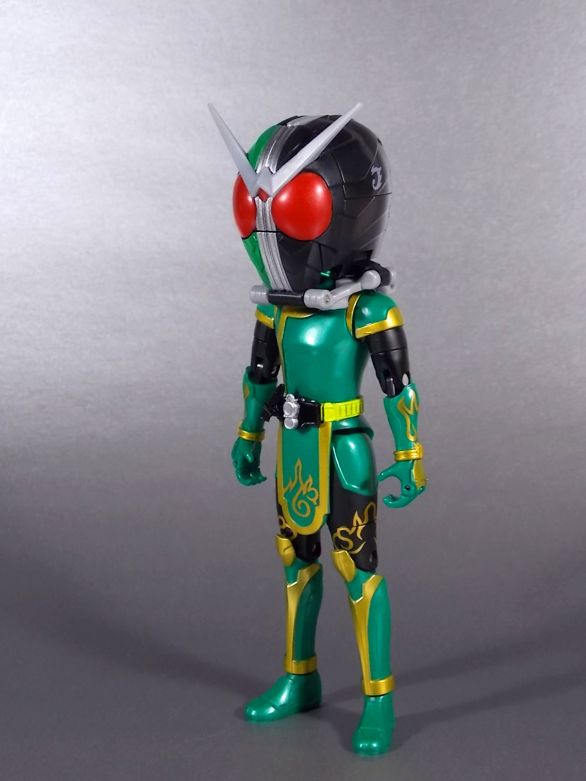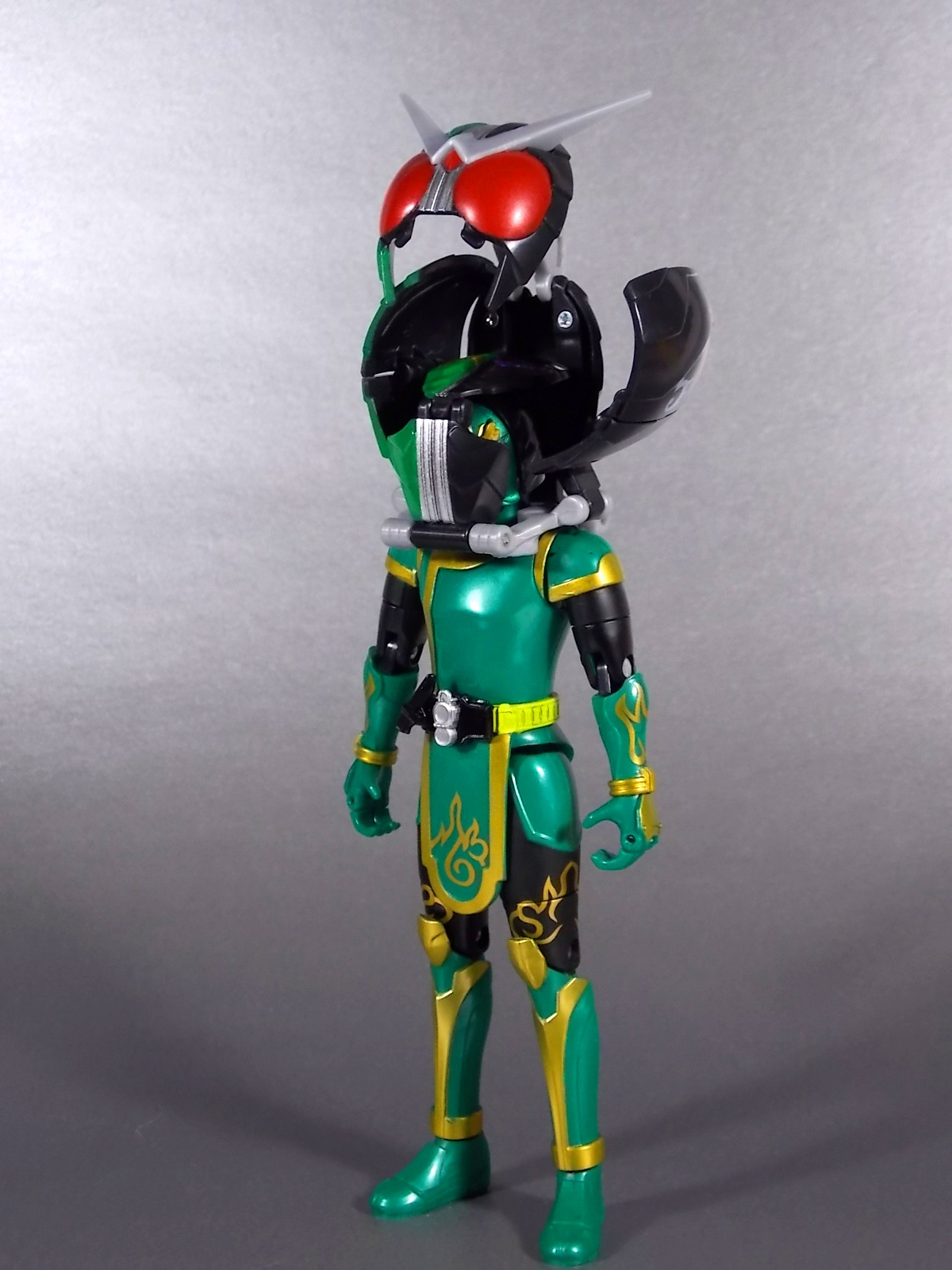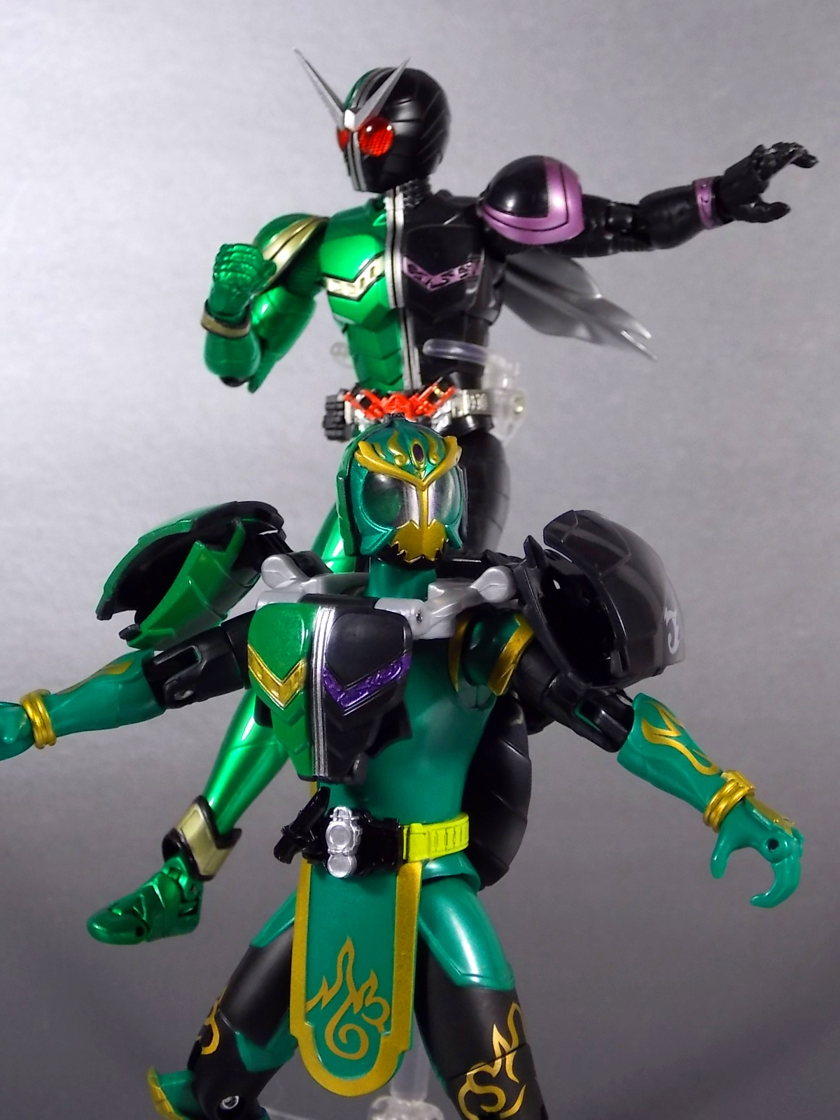 This power-up is exclusive (so far) to the Kamen Rider x Kamen Rider Gaim & Wizard: The Fateful Sengoku Movie Battle. The set itself comes with the 4 Legend Rider themed Arms and new helmet/visor sections for each rider. Sadly the set does NOT include the signature weapons of each rider. In the film the Gaim riders have access to each riders personal weapon but here they are not included. However, that doesn't take away from how awesome & creative a set like this is. Each Arms is a pretty faithful representation of a rider's helmet, and the visor pieces each give off their own unique touch to sell the whole thing. The intended use of each Arms is for Gaim to use Wizar, Zangetsu to use Fourze, Baron to use OOO, & Ryugen to use W. Though because these are Arms Change figures these can be swapped in any number of combinations. They look good on their intended riders but honestly they all look good in just about any combination. For transformation the OOO and W helmets are especially frustrating. Parts clearance issues prevent a smooth transformation but the end result is quite nice. Wizard is simple brilliance, and Fourze is fun and creative. This may not be the perfect set but it is quite fun. Provided sales numbers and ratings continue to increase for Gaim, I'd hope Bandai takes notice and creates more Legend Arms in this style.