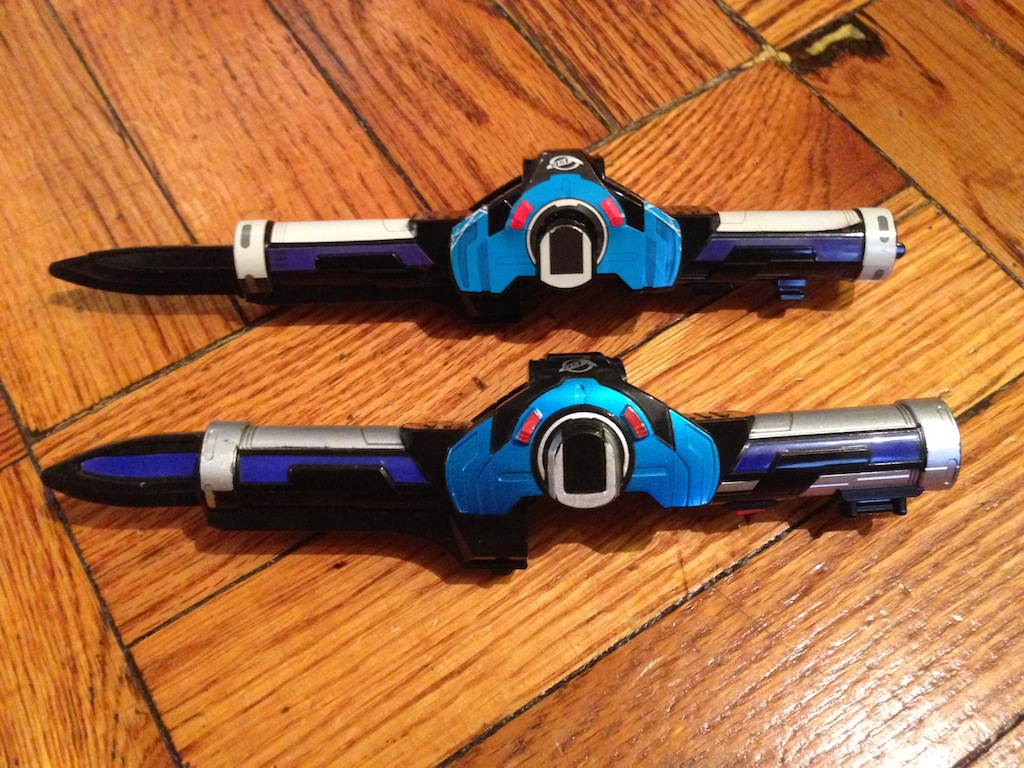 So here they are, the Narikiri set versus the DX set, you can see the size is a huge difference. the last two picture are actually the Gashapon version versus the Narikiri version, the gashapon version actually has a longer blade.
