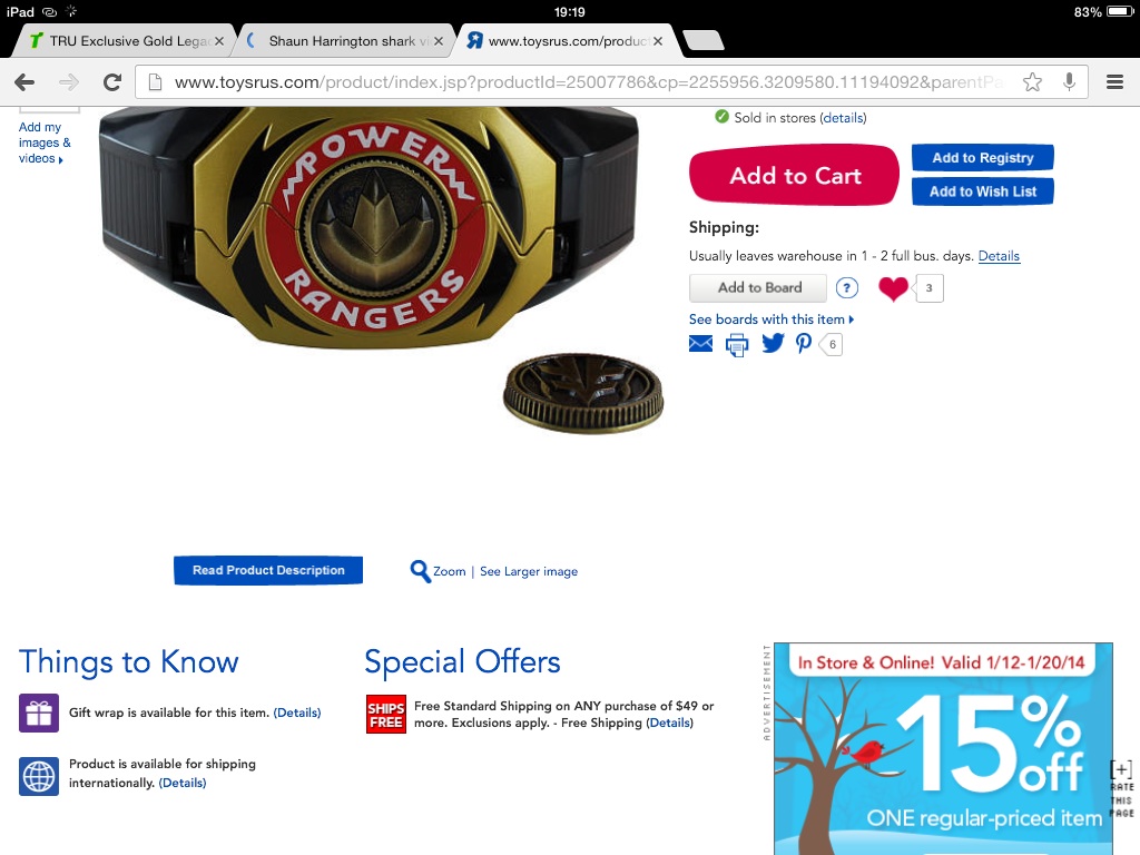 I bought mine in store. I hear terrible things about shipping from TRU, so I try to avoid online orders from there.