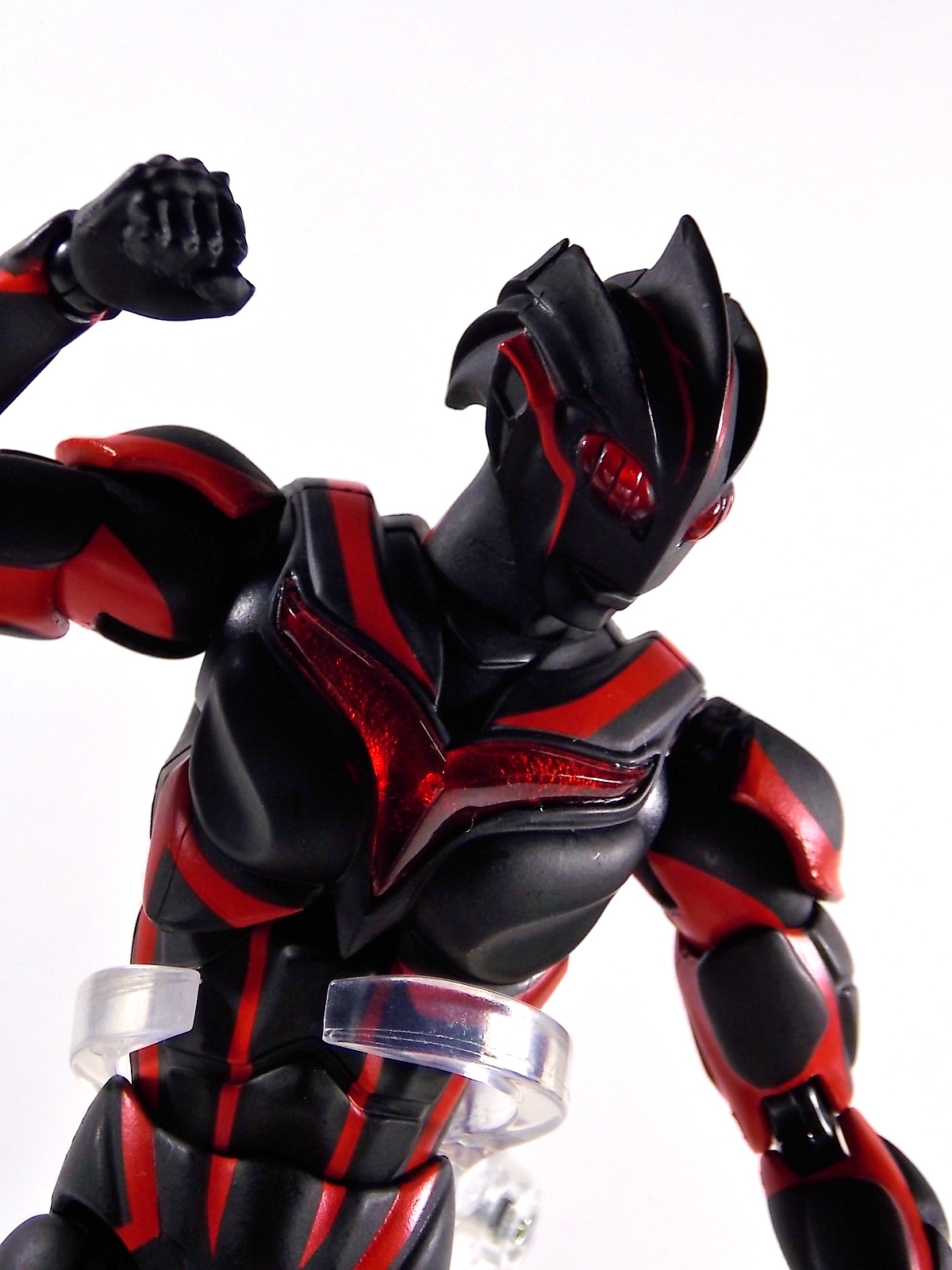 Ultra-Act Dark Zagi is the newest release in the Nexus series of UA's and it does not disappoint. (The companion piece Ultra-Act Ultraman Noa will be out this month and we'll be bringing you a gallery of it ASAP) A little background for those who missed this LWW segment. Dark Zagi is a being created by a race of aliens known as the visitors. The beings cloned Zagi from the powerful Ultraman Noa, after witnessing his ability to protect life. During the process however Zagi went insane and destroyed The Visitors homeworld. Gathering the Space Beasts together Zagi rampaged across the universe. An ensuing battle with Ultraman Noa, and a brief run in with the Showa Ultra Universe, would render Zagi without physical form and Noa almost entirely expended of energy. Both Noa and the visitors wound up on Earth predicting the return of Zagi there. Zagi arrived nearly 18 years before the beginning of the TV series and inhabited the body of a human who would one day become an integral part of TLT. Using this guise he killed and manipulated anyone and everything he could until the final episode of the series when he could finally seize Ultramans power to regain his original form. But just as before the mighty Noa rose up to defeat Zagi. A version of Zagi would later appear in Ultraman Ginga with much of the same rampaging personality. Now for the figure, for starters Zagi is absolutely gorgeous. Of all the recent Ultra-Acts which take advantage of improved design and quality in the line, Zagi is one of the best. Right up there with Ultra Seven Renewal and Father of Ultra. The deep almost blood red markings accent his black body very well and it gives off the most devilish look the form of an Ultra can achieve. Zagi may not have tons of accessories, but what he comes with is perfect for him. Of course there's the standard extra sets of hands, and even a beam effect to replicate his Lightning Zagi Attack. However this release goes the extra distance by including an explosion effect piece. One meant to go with Ultraman Noa to replicate their final struggle in the last episode of Ultraman Nexus. With Zagi in Space and Noa in Japan their twin beams met in the atmosphere with explosive force. This effect piece appears to be specifically molded on both sides to only accept either Zagi or Noa beam effects. The Nexus used in this photo shoot can sort of peg into it, but not securely. Also included is a small display base to hold this effect piece. Zagi has a fantastic range of motion, especially in his neck where it's the most needed to replicate his animalistic movements and contortions. This figure does the absolute best job of capturing the wild chaotic nature of this character. It's a welcome addition to any Ultra-Act fans collection.