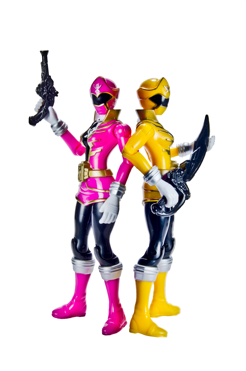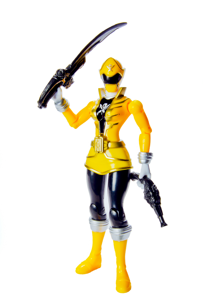 Each of the Super Megaforce Rangers comes packaged with 1 Super Mega Saber and 1 Super Mega Blaster. The Red, Blue, and Green Rangers all share the same male buck but with a unique headsculpt and the Pink and Yellow Rangers both share the same female buck but with a different headsculpt. Both the male and female figures each have 17 points of articulation. That is including 4 in each arm (2 at the shoulder, elbow, and rotating wrist), 4 in each leg (2 at the hip, knee and rotating calf) and a rotating head. Due the character designs and the sculpts of the figures, articulation is hindered in certain areas of each figure. The high, stiff collars only allow the heads to turn approximately 45º left or right. The rigid, low-hanging coattails on the male Rangers restricts the range of motion that the 2 joints in the hip should allow, however, the tight skirt piece of the female rangers virtually inhibits any movement of the upper leg at all. The joints are there, but they are rendered useless, only allowing for 'stiff-legged' poses. The figures in the 5 inch Super Megaforce line continue the 'tradition' of over-exaggerating the proportions of both the male and female Rangers. The Male Megaforce rangers have the typical 'roid-rage' look with over-pronounced biceps, pectoral, abdominal, leg and back muscles. Contrastingly, the 2 female Rangers have very slim limbs, a slim waist, and an overpronounced bust. The female figures do not just look smaller, but physically are by a fair margin. They stand at approximately 4 & 5/8 inch compared to the 5 inch male rangers and are only 1 & 2/8 inches across their shoulders compared to 1 & 7/8 inches of the males. I am not asking for 'hulked-out' female rangers, but making them more in proportion to their male counterparts (or vice versa) would make them appear less gangly. Overall, the figures are what they are. With their lack of accessories, limited articulation, and odd proportions, the 5 inch figures are by no means a replacement for S.H. Figuarts, however, at their current price point of $7.99 each, you can have an entire team of Rangers for less that the cost of one Gokaiger. |