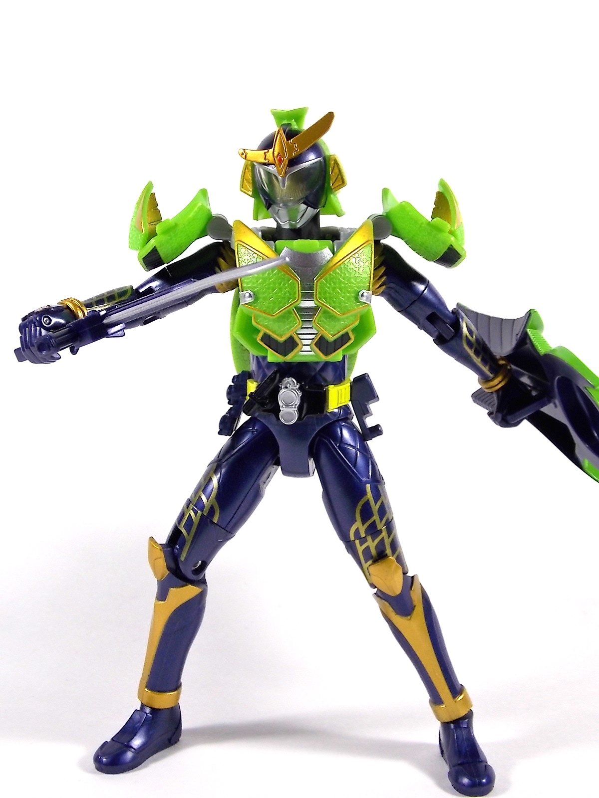 Kamen Rider Gaim's Arms Change line just keeps chugging along with more releases and this reviewer for one can not get enough! So today we bring you yet another look at this popular line in the form of AC 05 Arms Change Armored/Kamen Rider Zangetsu! Zangetsu is by far the rider we've seen the least of in show. Having only been seen transforming once by viewers, his actual rider name has never been uttered in show. Not even before his upgrade to his Energy Shin Zangetsu Form. As the older brother of Ryugen one might assume they would share some traits, however this isn't the case. AC Zangetsu actually shares the most qualities with Gaim. Primarily because the base body for each of these riders is nearly identical. Without Arms attached Gaim & Zangetsu are nigh identical save for color differences and the remolded head crest. Zangetsu tends to feel a little lighter and cheaper based on reports from numerous buyers. I can't say mine feels bad at all. But the widespread issue it seems nearly all Zangetsu's suffer from is a bent sword. Being that this is almost a straight up Gaim repaint the Musou Saber is identical, but nearly all Zangetsus have a strange bend at the tip of the saber so it points outward. A very odd but recurrent QC issue. The Melon Arms themselves are very detailed. Much more so than any of the other previously released arms. The intricate details sculpted into the melon just really pop with that bright green. And when combined with Zangetsu's white backdrop of a body it's a literal match made in heaven. The Melon Defender shield Zangetsu comes with is large, thick, and fairly heavy. If you don't really clasp his hand around it it will slide out and fall. It's not very practical in terms of the toy but the shield does look nice. Zangetsu is probably the design that evokes the most badassery. The figure carries that over quite well. Now when it comes to Arms Changes the Melon Arms is kind of average. Unlike Banana which looks good on everything, and Budou which is terrible on almost everything, Melon sort of works okay on most things. Definitely better on Gaim & Ryugen, terrible on Baron. But that's just the nature of how these things are colored. Some colors just inherently clash with one another. ow Zangetsu himself really looks great in anything. Banana and Orange really work, especially Banana. Something about that Arms in aprticular makes it work with everyone. Budou is the most passable on Zangetsu. It simply does not work for Gaim & Baron, but Takatora here can almost pull it off. All in all? Another excellent addition to the Arms Change line. If you can find one at all I recommend picking it up. However prices have skyrocket (as we've said before) for this line. Particularly for Zangetsu who appears to be in much more scarce than the others. However if you can't find Zangetsu then holding out for Shin Zangetsu next month would also be a good option.