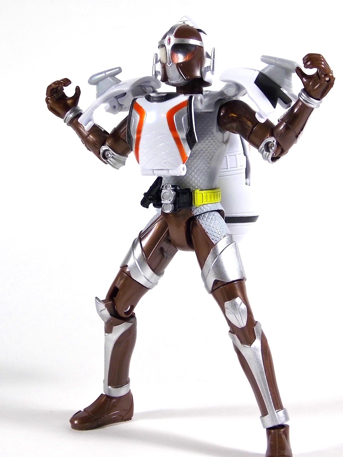 The Arms Change line from Kamen Rider Gaim chugs right along with it's latest release, Kamen Rider Gridon Donguri Arms! Gridon is also a first for line, being packed with his Lock Vehicle the Dandeliner. Come on, Donguri Arms! Let's start with Gridon. As you may know from the series his name is a play on the word Donguri, Japanese for Acorn. It's the result of reversing the syllables for Donguri. Kamen Rider Kurokage jokingly gave him this name and Jonouchi progressively got used to it. Now the Gridon base body or pre-arms itself is literally a repaint of Kamen Rider Baron with a new head. The body itself is exactly the same as Baron featuring only paint app differences. The whole look of Gridon appears to be akin to a viking. Paint differences aside this guy functions just like the rest of the line interacting with the included Donguri (Acorn) Arms. This Arms plays it safe and goes back to the basics of the Arms Change line, being a straight drop onto the riders head, then fold out type. Though this one has possibly the easiest transformation of all it's actually pretty fun. There''s an added slide bar connecting the front of the chest to the back plate that allows for an extra bit of movement during transformation but also really helps to lock the chest in place. This Arms strikes a great balance of being bulky yet functional, much better than Banana but not quite as free as say Orange or Melon. The Donguri Arms, while not a perfect match for the other riders, works fairly well with them. Gridon with his more muted color scheme thankfully works with just about everything. Brilliant examples are Gridon using Pine, Kiwi, and especially Banana Arms. Though the Legend Rider Arms do look rather bland on him. The included weapon, the Donkachi, doesn't have any movable parts and surprisingly doesn't have an open socket on the handle to combine with a Musou Saber. Though it shares the same basic mold as the Daidaimaru & Pine Iron which do. It's a fun little mallet, though like the Dragon Shot can be difficult to hold The second post of this thread contains the attached Dandeliner images. Now to the Lock Vehicle. The Dandeliner as we've seen it in the show so far, has only been used by the MP Kurokage Troopers working for Yggdrasil. Being that this one is packed with Gridon it's safe to assume he'll acquire one rather soon. Magazine scans also show that Gaim will use one in the near future. The Lock mode itself is just as nice as the Sakura Hurricane or Rose Attacker. It functions with DX role play toys but has no electronic features. Transformation is just as straight forward as the lock bikes. However because this represents a flying vehicle, there are no wheels on it. So it sits flat on any given surface and doesn't have nor need a kickstand to sit up right. Another welcome addition to the Lock Vehicle line. The AC 07 Arms Change Gridon & Dandeliner Lock Vehicle set is another home run for Bandai of Japan. As if this line wasn't popular enough already, this release was severely under stocked by several major online import retailers. With quite a few customers reporting their orders went to back order, or were simply cancelled due to inadequate stock. If you can get your hands on this set I HIGHLY recommend it. It's worth every penny.