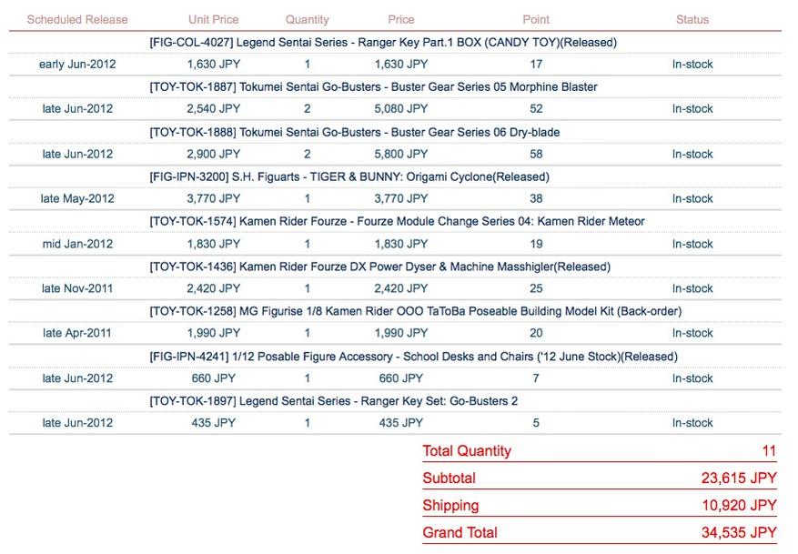 Also, mild correction: I have payed $35 for shipping from Japan, when I ordered my Figuarts Gattack, Punch Hopper, and SIC Den-O Wing Form. |