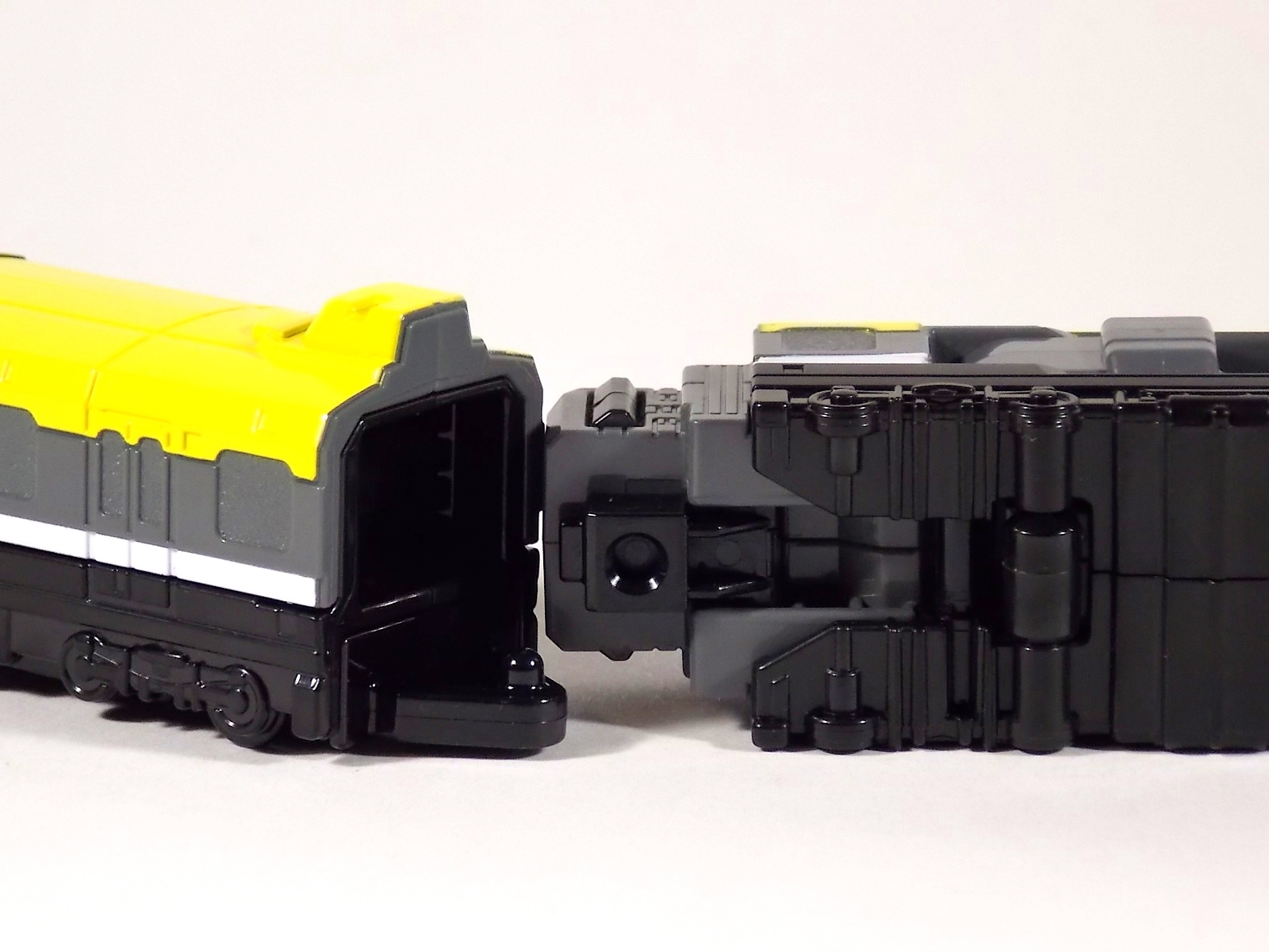 The problem I have with the mech is that it's robot mode was quite clearly compromised for the sake of the trains, to keep them looking like trains. But the trains are ALSO compromised, with gaps and holes and combiner parts just littering the train bodies. So both forms suffer, for what ultimately results in a simple and unsatisfying conversion.