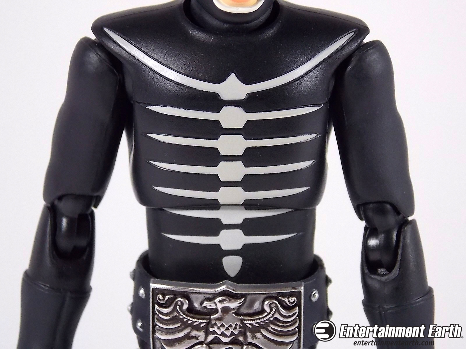 We're back with another awesome gallery made possible by site sponsor Entertainment Earth! A blast from the past, it's everybody's favorite and original (sort of) grunt. It's the S.H. Figuarts Shocker Combatman! The Shocker Combatmen are of course the old enemies of the original Kamen Riders. They worked for, you guessed it, Shocker! (Sacred Hegemony Of Cycle Kindred Evolutionary Realm) The type seen here bear the most iconic version of the Combatman costume, the white ribcage. The original version of the costume is a bit more bland. But this one has succeeded in being more lasting. But our focus today is this Shocker Combatman. By far the most iconic grunt in Kamen Rider, or in fact any tokusatsu franchise ever, the Combatman has spawned numerous media and merchandise in Kamen Rider's 40+ year history. Is it any wonder these goofy guys have had such staying power? This version of the Combatman first appeared in Kamen Rider 14 alongside the kaijin of the week at the time, Sabotegron, and has lasted ever since making numerous cameos throughout the franchise. Reappearances include Kamen Rider Decade All Riders VS Dai Shocker, OOO/Den-O Let's Go Kamen Riders, and a very special 999th & 1000th Episode anniversary in Kamen Rider OOO! Now onto the figure! The Shocker Combatman comes with 3 sets of additional hands. A couple to replicate the traditional Shocker Sieg Hail salute, a few for holding things, and one additional hand holding a special item. An OOO Cell Medal! This very awesome accessory helps recreate a pivotal scene from OOO/Den-O Let's Go Kamen Riders where due to the antics of the Den-Liner crew, a Cell Medal is left in the past allowing Shocker to rise to world dominance at last! A very awesome bonus indeed. Also included are two weapons. One the traditional Kukri knife emblazoned with the Shocker logo. And the other a classic Shocker Staff. All in all the S.H. Figuarts Shocker Combatman is a really really fun figure. Grunt figures like this don't get released terribly often but they should, troop building this kind of thing can work really well when it comes to building awesome displays. If you'd like to pick up an S.H. Figuarts Shocker Combatman they're currently in stock at site sponsor Entertainment Earth for $29.99!