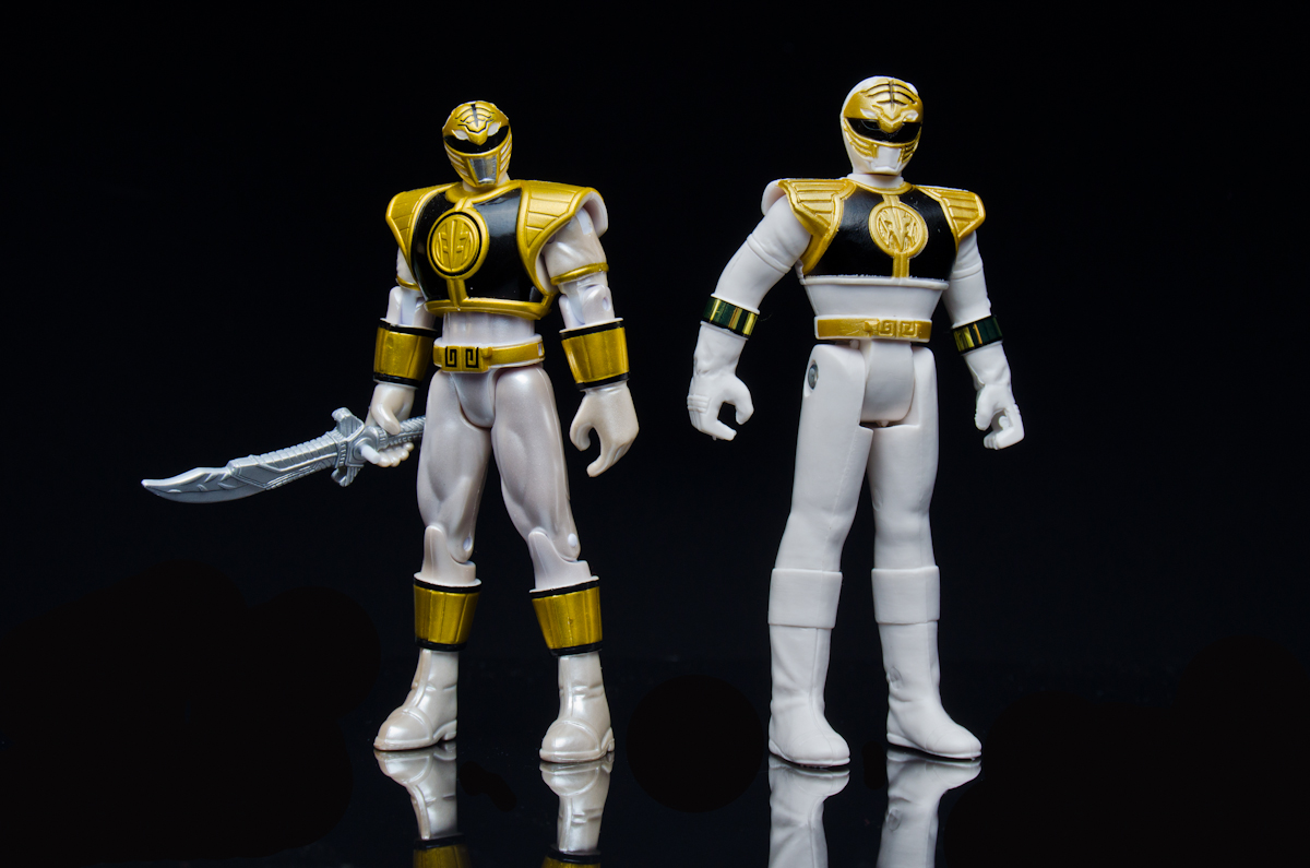 I like the size comparison with the 2010 White Ranger / Super Megaforce release. I think in some areas it's a bit better proportioned, but the lack of paint, and articulation makes the BoA figure stand out. Maybe it would be cool to kit-bash them?