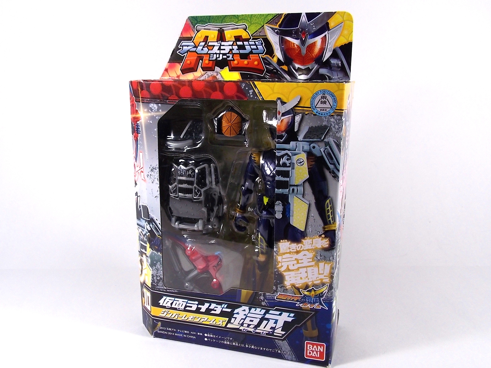 After a brief hiatus I'm back with yet another gallery of an Arms Change figure! Today is AC10 Kamen Rider Gaim Jinba Arms! Gaim Jinba Arms is probably the most unique release in the line so far. If you don't know by now, in show Jinba Arms actually contains the power of all 4 Energy Riders. Contained in this lantern shaped armor are the powers of the Peach, Melon, Lemon, & Cherry Energy Lock Seeds. And awesomely the toy replicates this gimmick! But let's start with the base body. As you can see it's physically identical to the standard Gaim included with Orange Arms. The only differences being the remolded driver and repainted faceplate/crest. This new version of the figure has the Genesis Core & Lemon Energy Lock Seed molded in place to the side. The faceplate is painted black similarly to the Bujin/Blood Gaim and the head crest is now silver rather than gold. The holster for the Musou Saber is also gone, but this figure doesn't come with one anyway. Mainly because the Jinba Arms primary weapon is that of the Energy Riders, the Sonic Arrow. However unlike Shin Zangetsu there's nowhere to store this weapon on Jinba. But this form is sort of a hack of the E. Rider powers in show so is it any wonder that it couldn't properly store such a weapon? The Arms. AC Jinba Arms has all 4 Jinba Forms contained within it. In show we see the arms rotate through the air as it falls onto Gaim's head. The toy replicates this by having the clasps which lock over an AC figures shoulders remain stationary. The 4 sides of the Arms rotate around this stationary piece on a connected ring, allowing you to access any of them at any point. Each "side" transforms exactly the same as the last. Any one of them can become a shoulder, chest, or back plate. The Jinba energies are represented under two flip down panels with foil labels under them on any of the 4 sides. These are damn nice labels, though mine had some air bubbles under them. The new visor/helmet piece is a basic remold of the Orange Arms one. Though the orange color plays off the black of this new form oh so nicely. It should be noted you do have to parts form this slightly to get the armor to work. The shoulder pads which come off the neck area are a separate piece that you need to remove and plug back on each time you rotate the arms. This piece locks the currently used face of the arms in place and fills out the neck area. It also locks together the top of the Jinba Arms making it more secure. It wouldn't have been possible to make it sort of magically attach the way it does in the CGI model so this is a good compromise. Of course I never really have anything bad to say about Arms Change, and this time is no different. AC 10 Gaim Jinba Arms is an excellent figure, and dare I say it I like it better than the original Gaim. A lot of people have been turned off by this form being "lame". Which I don't really get considering how ingenious it is to include the powers of 4 riders/forms in one. The toy being able to pull this off is just brilliant. Easily my favorite AC so far. The next gallery in our series of AC's will of course be Gaim Kachidoki Arms! So I'll be back as soon as I have one!