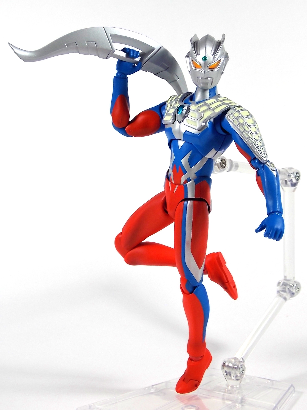 This time I'm looking at Ultra-Act Zero V2. This renewal is a very welcome addition to the Ultra-Act line. Anyone familiar with the line knows that the original release of Ultraman Zero isn't the best of Ultra-Acts. The figure suffers from quite a few of the design flaws that other earlier releases in the line do. Articulation & general QC being the most common problems. This V2 rectifies nearly all those problems. As you can Zero V2 is presented in what's become the new standard for Ultra-Act packaging in the last two years. For starters the V2 includes a TON of a new accessories. It's a vast improvement on selection over the original release. Not only does Zero include 6 sets of hands, but also 2 individual Zero Sluggers, plus an extra version of each attached to beam effects as well as a combined form of the two as the Zero Twin Sword. The alternate chest plate to replicate the Zero Twin Shoot is also includde as well as alternate shoulder panels, a beam effect, and a massive double beam effect to be used in conjunction with a second figure. An alternate head and a back plug for Tamashii Stages are also included. This guy is loaded down. If this improvement over the original wasn't enough to entice you, it's also a massive improvement in the articulation department. As you can see the figure makes full use of the new body type to properly able to achieve the characters signature moves. Ultra-Act Zero V2 is an absolutely excellent renewal of a figure that was underwhelming previously. It's a fantastic compliment piece to any of your other Ultra-Acts, though unfortunately the downside is that it makes the flaws of previous release more apparent. Such as the height difference between Zero V2 and Glenfire.