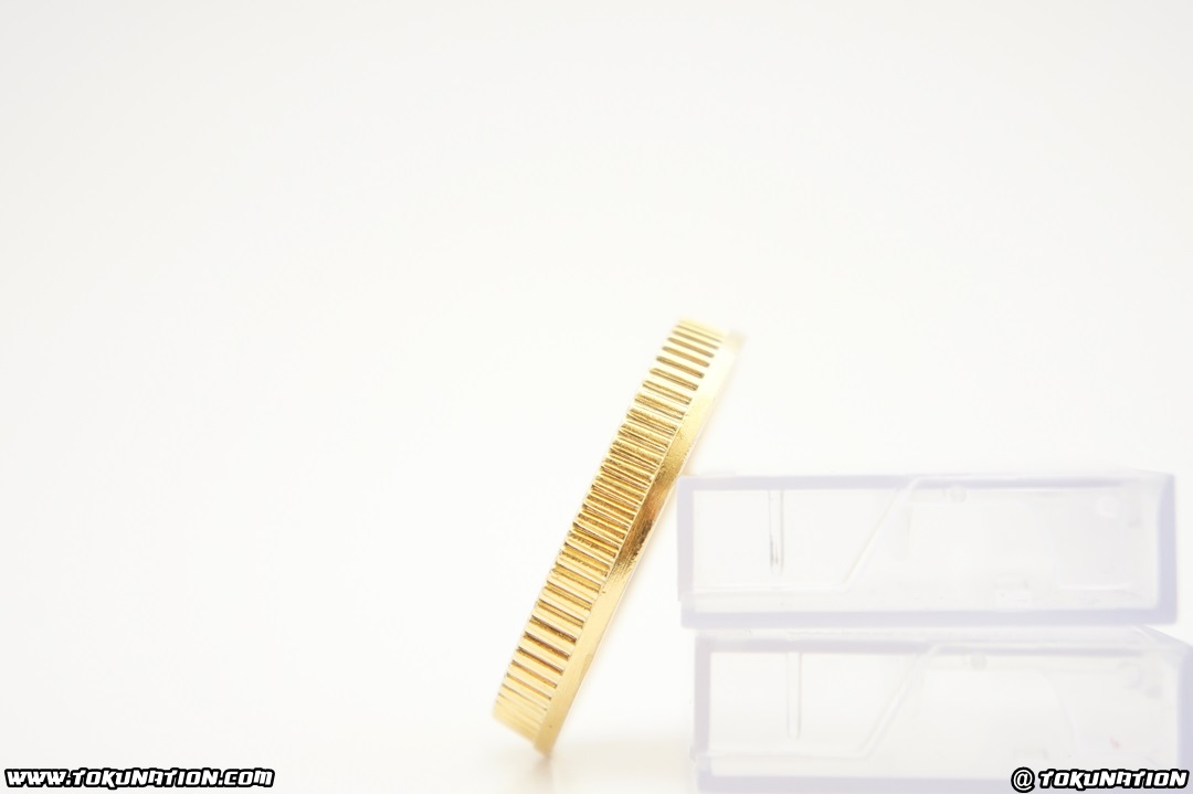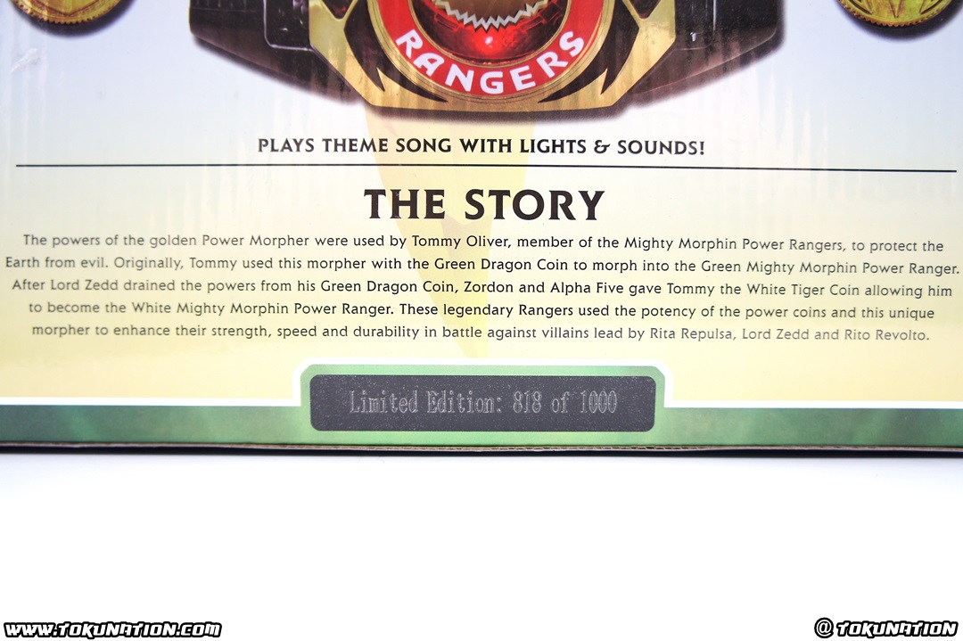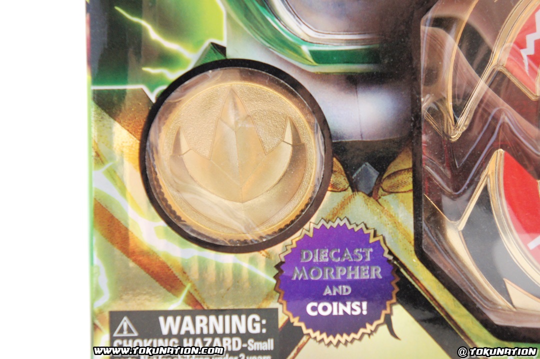 For the 20th anniversary of the Power Rangers franchise, Bandai of America kicked off its celebration by releasing the first item in what would become one of their more successful lines in recent memory - the Legacy Collection line for Power Rangers - with the 20th Anniversary Legacy Morpher. The original release featured the main morpher used by the five Mighty Morphin Power Rangers and included a coin for each. It was chrome, diecast metal, had lights and sounds, and played the theme song. It was, by all standards, the morpher that everyone had been waiting 20 years for someone to make. After it's release, fans began to wonder whether or not we'd see a Green and White version Legacy Morpher, as the Green and White Mighty Morphin Power Rangers had different coins and a more golden colored morpher. It's important to note that the United States never had a Green Ranger morpher released during Mighty Morphin Power Rangers. Their prayers were answered when Bandai of America announced one of their exclusives for San Diego Comic Con 2013 - the 24K Gold Green and White Legacy Morpher. Now, what they meant by "24K Gold" is up for debate (raz famously had it tested and it showed no visible sign of gold anywhere in it, d'oh). The fandom exploded in both cheers and ire - how could they make, possibly, the most desired morpher of all time and make it a convention exclusive that no one can get to? As the story ends, a non-gold-plated version of this same toy would be released this year to Toys'R'Us stores, featuring weathered coins instead of gold coins. But let's get to the actual toy here! The SDCC 2013 Exclusive Gold-Plated Legacy Morpher has no real difference in weight when compared to the original Legacy Morpher. The gold-plating of the morpher does it make pop a little bit more than the other two Legacy Morpher releases, but not too much. It's also very cold to the touch - more so than the Toys'R'Us version of the Green & White Ranger edition. The best part, in my opinion, are the two coins - the Dragon Coin and Tiger Coin. It is (of my personal opinion) that these coins are beautiful, and when compared to the weathered version that was available at mass retail, simply blow them away in every aspect. The weathered coins from the mass release version just don't have the same sparkle and shine - literally - and as I joke, the gold coins are the "before we lost our powers" while the weathered coins are the "after we lost our powers" versions. Yes, I'm a nerd. One thing to note - the SDCC 2013 Exclusive Gold-Plated Legacy Morpher is based off the latter release of the standard Legacy Morpher. This means that with the electronics you don't have to keep the release button held down for the theme song to continue to play. Releasing your hold on the button will not stop the theme song. The release of the original Legacy Morpher had different electronics, forcing you to keep the button held to play the theme song. This was changed in the latter releases of the original. The after-market on this thing goes from anywhere from $400 up to $1000 depending on who is selling it. If you're a die-hard completest, be prepared to drop some coin to get this thing. If you're not too concerned about the morpher and just want these cool looking coins, your best bet is to check out a ton of the custom-made coins which will save your wallet a lot of strain. MORE IMAGES, INCLUDING EXCLUSIVE TO RETAIL COMPARISONS, IN THE NEXT POST!