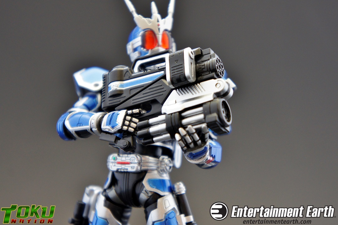 Originally released in May of 2010 (wow, four years ago!), this figure is still very impressive for today's standards. Jokingly referred to as the RoboCop Kamen Rider for the intense amount of accessories that come with him (and the robotic look and feel), he still manages to pack quite a punch. Featuring all the old engineering of the S.H. Figuarts from 4 years ago (the old waist, the diecast feet, etc.) this figure doesn't really need to get the upgrade that a lot of the older figures are getting - the old features work, and work quite well in my opinion. The accessories are too much fun - the Cerebrus Gun being quite possibly the best accessory that I have personally had in my possession. Short but sweet - if you can find this figure for under $40, don't hesitate to pick it up. Special thanks again to EntertainmentEarth.com for sponsoring this gallery! Check them out for a great selection of toku toys and for case pricing on current toys of all variety!