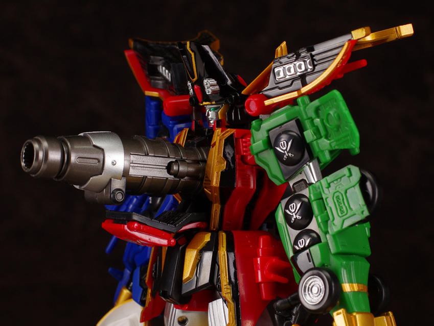 Schizophonic 9 has posted new images of the recently released Super Robot Chogokin GokaiOh! Also seen in this batch of images are the slash effect parts. If you wanted a fully articulated diecast GokaiOh, this is the figure to get! Also shown are closeups of the opening panels, and images which give a good idea of just how articulated(it can do the splits!) SRC GokaiOh is. More GokaiOh goodness after the jump!