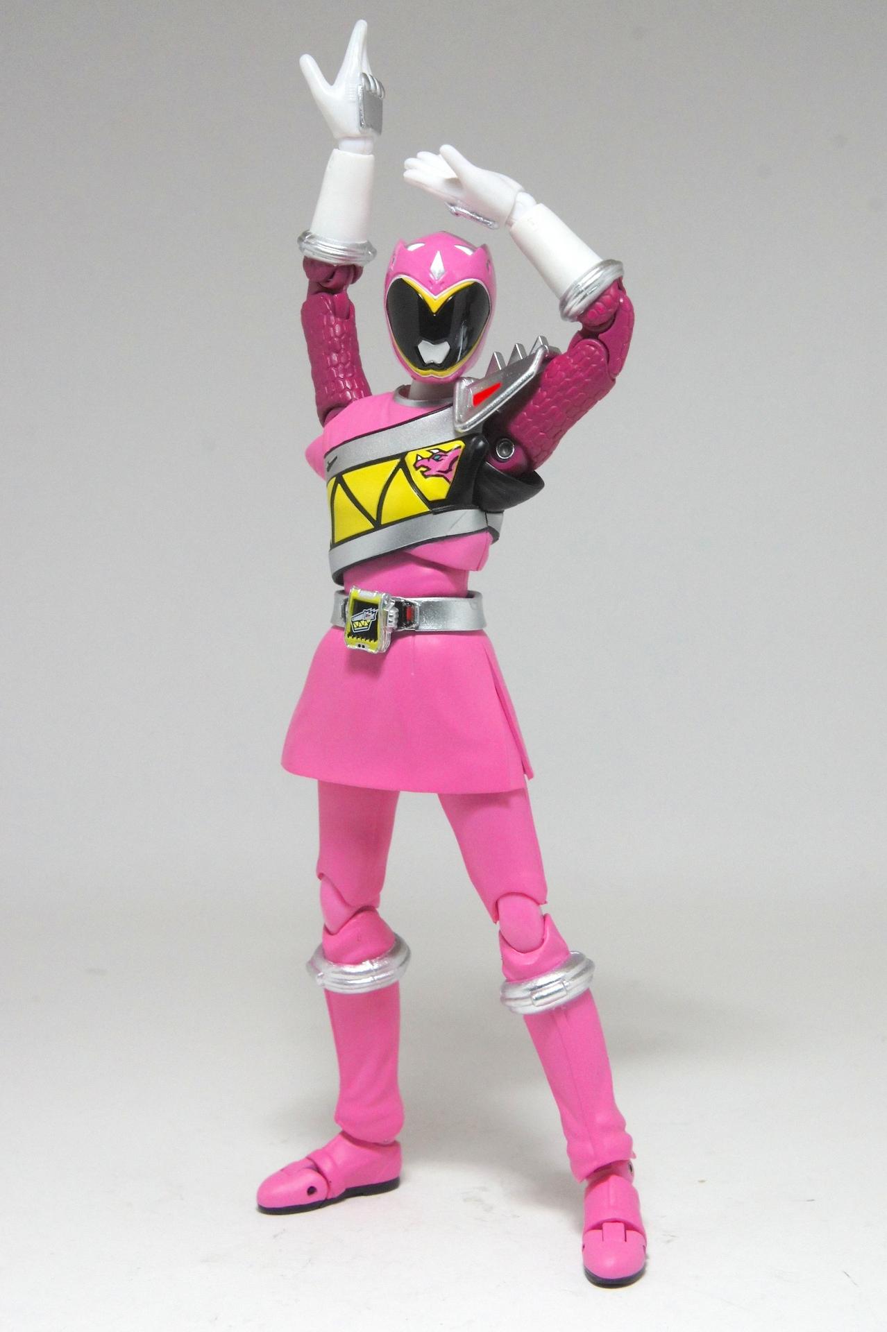 Tsuno No Yuusha! (The Horned Heroine) Kyoryu Pink! This gallery showcases 2 more members of the 37th Super Sentai, Zyuden Sentai Kyoryuger! The first of these figures is Kyoryu Black, otherwise known as Ian Yorkland! Ian is a young treasure hunter from Europe who became a Kyoryuger after an encounter with the Deboss Legion during a treasure hunt led to the death of his best friend. After falling and landing in front of a castle where his future partner Zyudenryu Parasagun was, Ian and the parasaurolophus battled until he was deemed worthy enough to be his partner. Although he makes his debut in the first episode, Ian doesn’t join the team until episode 4, when the very Deboss Legion member that he encountered months ago appears before him. A playboy, Ian is often at ends with his fellow teammate, Souji Rippukan/Kyoryu Green. Despite his playboy attitude, Ian cares for his teammates and for the girls he dates. He is designated as the leader of the team if Daigo is ever out of commission, proving to be a great strategist, but when he’s not, he’s shown to be their best sharpshooter, often dual wielding. Sharing the same body type as his fellow male Kyoryugers, Kyoryu Black is a glorious matte black body with a glossy black head and silver upper arms. Compared to the wrist issues seen on Kyoryu Red, Kyoryu Black’s hands are very easy to swap out. Just like his fellow Kyoryugers, Kyoryu Black comes with a number of accessories- 9 hands (3 for his role call poses, 2 for wielding the Gaburevolver, 2 for wielding the Gaburicalibur, and the standard Figuarts hands), a Gaburevolver, a small #2 Parasagun Zyudenchi, a Gaburicalibur, his Armed On arm and his Zyuden Arms weapon, the Parasa Shot bowgun. Just like the other Zyuden Arms weapons, the Parasa Shot has a thick handle, but can be held with the Gaburicalibur holding hand if you fiddle around with it. Also, the Parasa Shot can’t combine with the other weapons. The second figure in this set is Kyoryu Pink, representing Amy Yuuzuki! Amy is a young rich college student who resided in America when the Deboss Legion first attacked. After meeting her Zyudenryu partner, Dricera in the Grand Canyon, Amy fought the triceratops and was chosen by her to be her partner. The only girl on the team, Amy proves she is not to be messed with by being the resident kick chick- in fact; she once kicked two energy arrows behind her! Amy is the second/third member to join Daigo after witnessing him in action in episode 2. Amy is often seen at home with her butler Gentle, who tries to get her to act like the prim and proper heiress that she is. Despite this, Amy often works in the same restaurant that the team usually eats at/holds a portal into the Spirit Base. Kyoryu Pink stems away from the other Kyoryugers, with a smaller female body frame. Just like her teammates, she has multiple accessories- 4 hands for her different role call poses, 2 hands to hold the Gaburevolver, 2 hands to hold the Gaburicalibur, and the standard 2 Figuarts hands, the Gaburevolver, the Gaburicalibur, a small #5 Dricera Zyudenchi and her Armed On arm and her personal Zyuden Arms weapon, the DriceLance. As it turns out, the one included with the previous set, the Kyoryu Blue and Kyoryu Green Set, was the one for the Kentrospiker. Something to note is that she has the same sized hands as her other teammates and that her helmet seems a little small/her neck is too short. It is kind of difficult to get her into her role call pose as well. The shared accessory in this set is their Kentrospiker Part, a combination of Kyoryu Blue’s Stegochi Shield and Kyoryu Green’s Zakutor Slasher. Both can’t separate into their individual weapons. The DriceLance in that past set can combine with this accessory, forming the Shield LanSlasher! With the Fang Shot included with Kyoryu Gold, the team can complete the Kentrospiker accessory! They also lack the GaburiCannon as an accessory like the rest of their team. This set is really sweet, and I’m glad I managed to get them. They were initially released as a Tamashii Web Exclusive for April 2014. Stay tuned for Den-O’s gallery of the Thundering Hero! (See post 2 for more pics of Kyoryu Pink and the 5 Kyoryugers together!)