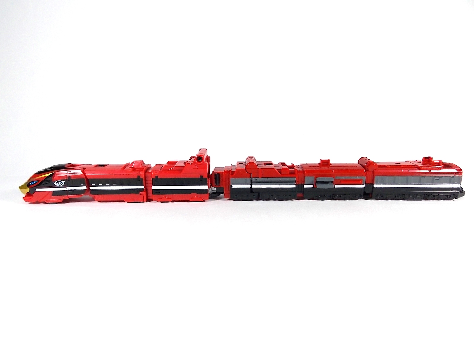 Once again we bring you a gallery full of imagination. This time in the form of the DX Go-Busters Ressha from Ressha Sentai ToQger! This is of course the first of two known EX or Legend Sentai Resshas in the line. This latest Ressha is a possible movie exclusive mecha from Heisei Rider VS Show Rider: Kamen Rider Taisen Featuring Super Sentai. In the film the featured sentai is of course the currently running ToQger, and they get a little help from their hero pals in the form of Kyoryuger Ressha & Den-Liner Ressha. However there's no confirmation currently as to whether the Go-Busters Ressha actually appears in film. As for the DX Go-Busters Ressha itself. This is a new "chest" Ressha which replaces Red Ressha in the ToQ Oh formation. Go-Busters Ressha is a full 2 car vehicle on it's own but it's designed a bit differently from the standard. As opposed to replacing Red Ressha entirely it merely replaces the front engine section. However the second car of Go-Busters Ressha is a bit smaller than the usual as well. In fact it's sole purpose is to become a new head for ToQ Oh. When combining you need only remove the engine of Red Ressha and replace it with the engine of Go-Busters Ressha and fold the front end at a 90 degree angle as normal. Then close up the doors and rotate ToQ Oh's head back into the compartment it's normally stored in. The second car of Go-Busters Ressha can then fold outward, almost inside out, revealing the new head and a set of clips to plug it in where ToQ Oh's head normally goes. Unfortunately this design doesn't match up with how it should really look. Because now you have a square block hanging off the back of the new combined head, rather than a smooth free standing head. But this is the compromise made for the transformation. As for the head itself it's based on none other than Go-Buster Ace's from Tokumei Sentai Go-busters! So it of course has the trademark shades look In comparing it to the original DX Go-Busters Ace's head you can see quite a few differences. It doesn't have the moving head fin or visor pieces and doesn't feature the translucent plastic of the visor either. Otherwise it's a fine approximation of the head sculpt, albeit it much flatter because of the way it transforms. When combined this form is known as ToQ Oh Go-Buster Ace.Of course this Ressha still features the same universal square peg/lock system of the other Resshas and has the same fold out hitches as well. So the interchangeability and playability are totally there. Though take it from me, it really only makes a good chest ![]() At the very affordable prices these additional Legend Sentai Resshas retail for, you should definitely pick them up. DX Go-Busters Ressha is worth it.