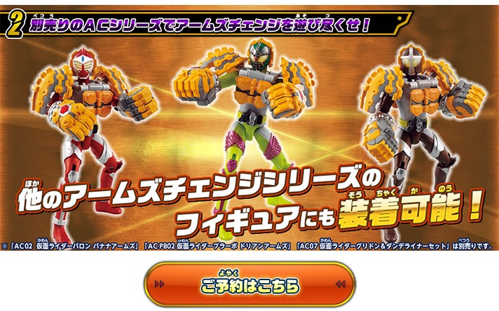 Gold Apple Rider Silver Apple Rider Baron (Lemon Energy) Decade Arms Gaim Arms Ichigo Arms We know Kiwami is coming, and clearly Knuckle is too now. So we're almost there.