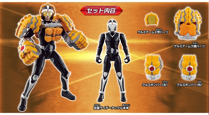 Gold Apple Rider Silver Apple Rider Baron (Lemon Energy) Decade Arms Gaim Arms Ichigo Arms We know Kiwami is coming, and clearly Knuckle is too now. So we're almost there. |