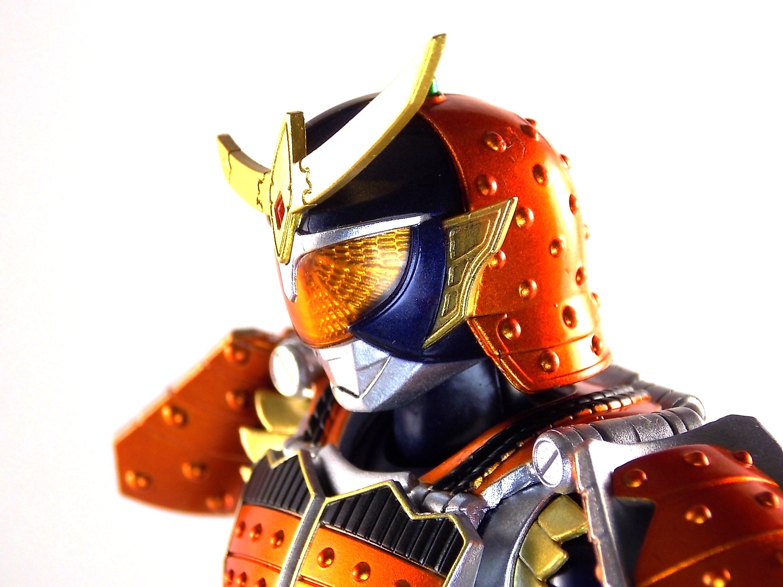 Well this has felt like a long long time coming. After the excellence of Kamen Rider Gaim the TV show, the release of beautiful collector figures was a foregone conclusion. When the S.H. Figuarts of Gaim and his compatriots were revealed months ago I remember being ridiculously excited. And after having this guy in hand, I am still ridiculously excited. **Note- Post #2 contains an additional 40 images of Gaim so be sure to check them all out! Let's get started! S.H. Figuarts Kamen Rider Gaim Orange Arms was released in tandem with his rival Baron. The pair of them are the first collector style figures released from Gaim so there's been a lot of hype about them. Let's dissect that hype with a look at this figure now. Packaging As you can see Gaim comes in a new style of packaging. Of course this is the common trend each time a new rider show releases Figuarts now. Gaim's packaging is a step above though. It really goes the distance to conveying the orange theme. Within the box Gaim is packed in the traditional plastic clamshells, and oh look he has tons of.... Accessories S.H. Figuarts Kamen Rider Gaim is certainly loaded with all the pertinent accessories he needs. Included with him are 4 sets of additional hands, each open to a different degree allowing him to hold one of his other accessories. No truly unique hands or anything but he doesn't really need anything more than this. And what would Gaim be without his two signature weapons? Defenseless! I kid. Gaim includes his trusty Musou Saber & Daidaimaru. The Musou Saber is quite nice and pointy at the tip. Unfortunately for me mine has a bit of missing paint app on one side though it isn't terribly noticeable. A small decal is also used to convey detail on the back side of the Saber which actually looks far better than painted details at that size could have. Sadly the pallete slide tab on the back of the Saber used to "reload" it doesn't move but that's no great loss. The Daidaimaru is clearly the better of the two weapons though as it is lavishly painted. It's damn near perfect. It almost looks like it could be an actual slice of orange. The two weapons can also combine as they do in show to form the Naginata Mode. Mentioned previously, as a welcome added bonus of design, Gaim's own Orange Lock Seed attached to his driver is removable and can be used with the Musou Saber to simulate a fruit charge attack! This is awesome. Figure Now this is the real meat of the whole ensemble. Kamen Rider Gaim himself. I'll just say it, this is hands down one of the absolute best S.H. Figuarts I have ever owned or handled. When looking at the figure, it's the small details that really pop. The functioning blade on the Sengoku Driver & it's removable Lock Seed, the gorgeous pearl orange paint used for the armor, the incredible compound eyes/visor, the free range of motion the figure has, etc, etc. This guy knocks every single thing out of the park. Almost. The articulation simply could not be better either. This figure truly moves like a person could. It should be noted that Gaim retains the "old style" ball jointed wrists common with a majority of the SHF line. The new "peg system" debuted with Kabuto Renewal has yet to make it to mainline releases. There also seems to be an issue that about half people have with this figure. And that's with the Musou Saber holster. People who have an issue with it have noted their holster is misaligned from the factory. Mine was the same way. The two halves were assembled just a bit off. For most people this means inserting the Musou Saber is quite difficult and has resulted in breaking the holster. Mine doesn't have a fit issue but is a bit off center. The holster as a whole does tend to pop out of the belt joint if you splay the legs out too far, but that's a minor issue. Overall S.H. Figuarts Kamen Rider Gaim is a homerun. It's the homerun of homeruns. This is the single best S.H. Figuart I've ever owned or handled. While it has a few drawbacks it's simply magnificent. The paint job, sculpt, accessory count, and packaging all come together to create an exquisite product. Please please go out and pick this guy up, you will not be disappointed. Next up on the to do list is the S.H. Figuarts Kamen Rider Baron Banana Arms Gallery!