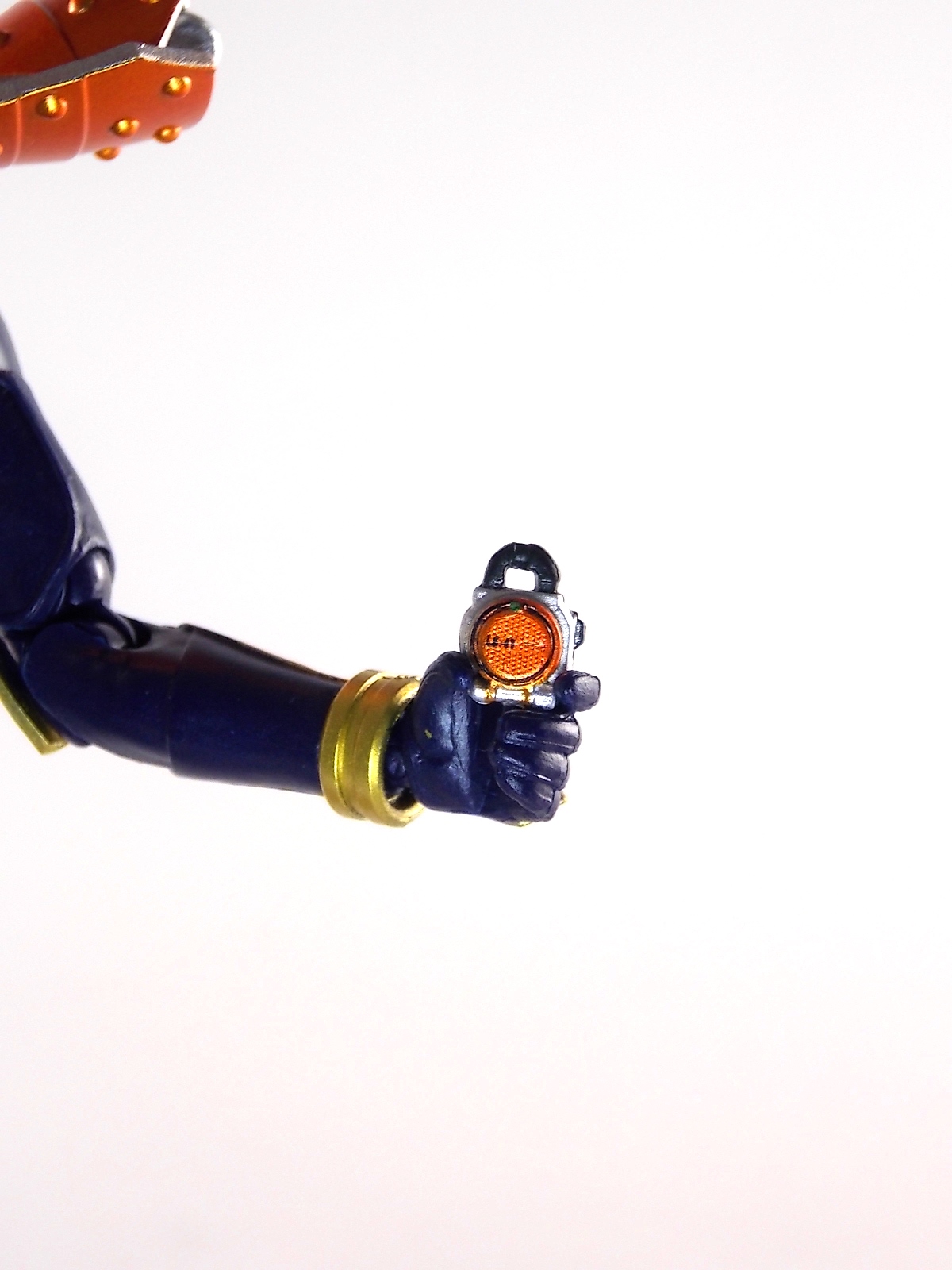Well this has felt like a long long time coming. After the excellence of Kamen Rider Gaim the TV show, the release of beautiful collector figures was a foregone conclusion. When the S.H. Figuarts of Gaim and his compatriots were revealed months ago I remember being ridiculously excited. And after having this guy in hand, I am still ridiculously excited. **Note- Post #2 contains an additional 40 images of Gaim so be sure to check them all out! Let's get started! S.H. Figuarts Kamen Rider Gaim Orange Arms was released in tandem with his rival Baron. The pair of them are the first collector style figures released from Gaim so there's been a lot of hype about them. Let's dissect that hype with a look at this figure now. Packaging As you can see Gaim comes in a new style of packaging. Of course this is the common trend each time a new rider show releases Figuarts now. Gaim's packaging is a step above though. It really goes the distance to conveying the orange theme. Within the box Gaim is packed in the traditional plastic clamshells, and oh look he has tons of.... Accessories S.H. Figuarts Kamen Rider Gaim is certainly loaded with all the pertinent accessories he needs. Included with him are 4 sets of additional hands, each open to a different degree allowing him to hold one of his other accessories. No truly unique hands or anything but he doesn't really need anything more than this. And what would Gaim be without his two signature weapons? Defenseless! I kid. Gaim includes his trusty Musou Saber & Daidaimaru. The Musou Saber is quite nice and pointy at the tip. Unfortunately for me mine has a bit of missing paint app on one side though it isn't terribly noticeable. A small decal is also used to convey detail on the back side of the Saber which actually looks far better than painted details at that size could have. Sadly the pallete slide tab on the back of the Saber used to "reload" it doesn't move but that's no great loss. The Daidaimaru is clearly the better of the two weapons though as it is lavishly painted. It's damn near perfect. It almost looks like it could be an actual slice of orange. The two weapons can also combine as they do in show to form the Naginata Mode. Mentioned previously, as a welcome added bonus of design, Gaim's own Orange Lock Seed attached to his driver is removable and can be used with the Musou Saber to simulate a fruit charge attack! This is awesome. Figure Now this is the real meat of the whole ensemble. Kamen Rider Gaim himself. I'll just say it, this is hands down one of the absolute best S.H. Figuarts I have ever owned or handled. When looking at the figure, it's the small details that really pop. The functioning blade on the Sengoku Driver & it's removable Lock Seed, the gorgeous pearl orange paint used for the armor, the incredible compound eyes/visor, the free range of motion the figure has, etc, etc. This guy knocks every single thing out of the park. Almost. The articulation simply could not be better either. This figure truly moves like a person could. It should be noted that Gaim retains the "old style" ball jointed wrists common with a majority of the SHF line. The new "peg system" debuted with Kabuto Renewal has yet to make it to mainline releases. There also seems to be an issue that about half people have with this figure. And that's with the Musou Saber holster. People who have an issue with it have noted their holster is misaligned from the factory. Mine was the same way. The two halves were assembled just a bit off. For most people this means inserting the Musou Saber is quite difficult and has resulted in breaking the holster. Mine doesn't have a fit issue but is a bit off center. The holster as a whole does tend to pop out of the belt joint if you splay the legs out too far, but that's a minor issue. Overall S.H. Figuarts Kamen Rider Gaim is a homerun. It's the homerun of homeruns. This is the single best S.H. Figuart I've ever owned or handled. While it has a few drawbacks it's simply magnificent. The paint job, sculpt, accessory count, and packaging all come together to create an exquisite product. Please please go out and pick this guy up, you will not be disappointed. Next up on the to do list is the S.H. Figuarts Kamen Rider Baron Banana Arms Gallery!
