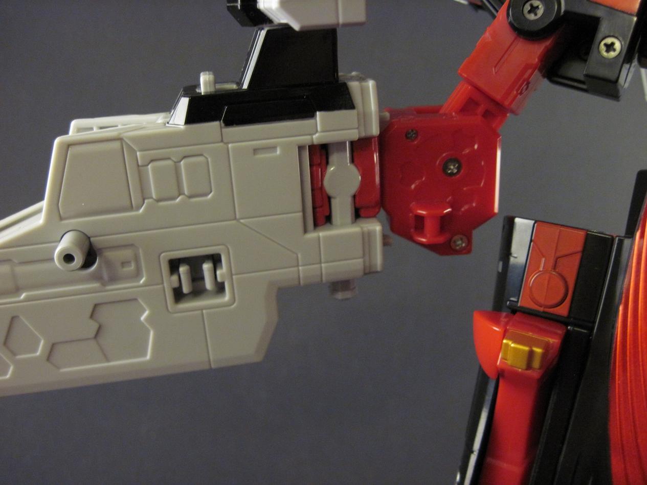The way the entire arm assembly slides in from one side and locks in at that height, it just wouldn't be possible. There's no additional room to work with to attach them higher.Thank you sir! The Beet isn't horrible on it's own, it's just no Ace. And the swords are a bit, ridiculous. Actually the pegs can't sit nearly deep enough in his hands for him to hold them properly. The fists are very shallow on each side, just enough to accommodate the gun swords in one mode or another. Actually in gun mode they can't even peg in properly, the posts just balance in the bottom of his hands. And if the Great Gobuster could actually fit in my photo setup I'd be happy to get shots of it. but it's so tall, and so think from front to back that I can't possibly get proper pictures of it.