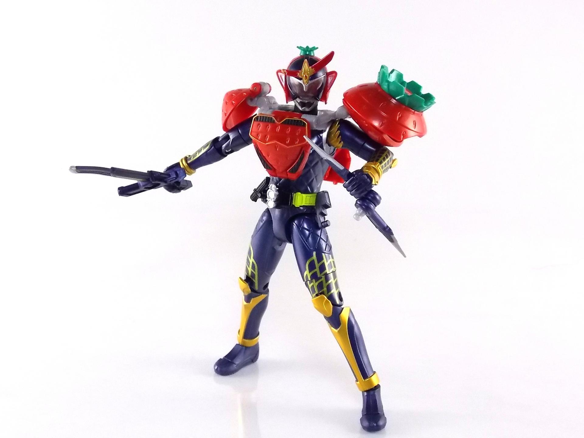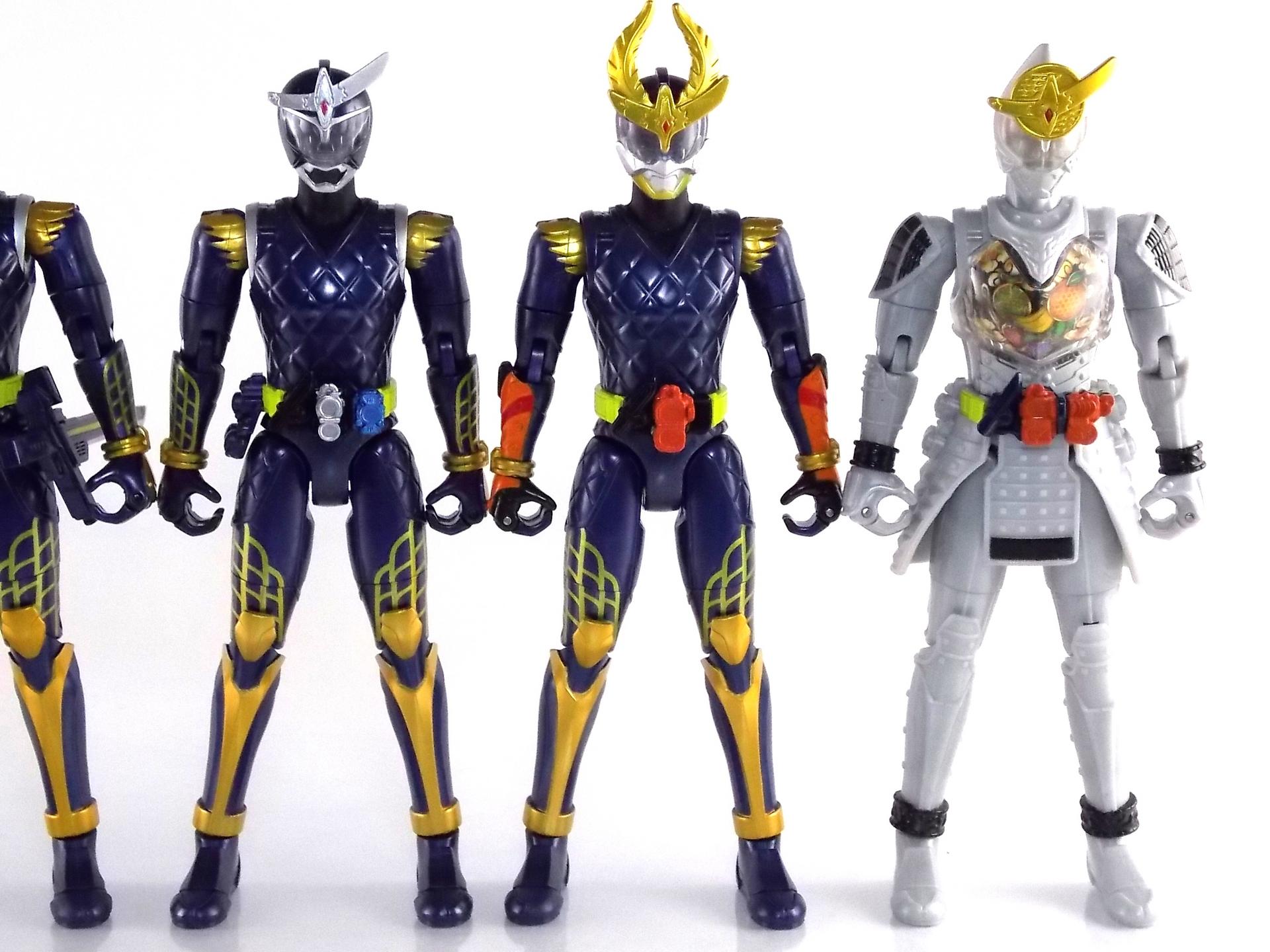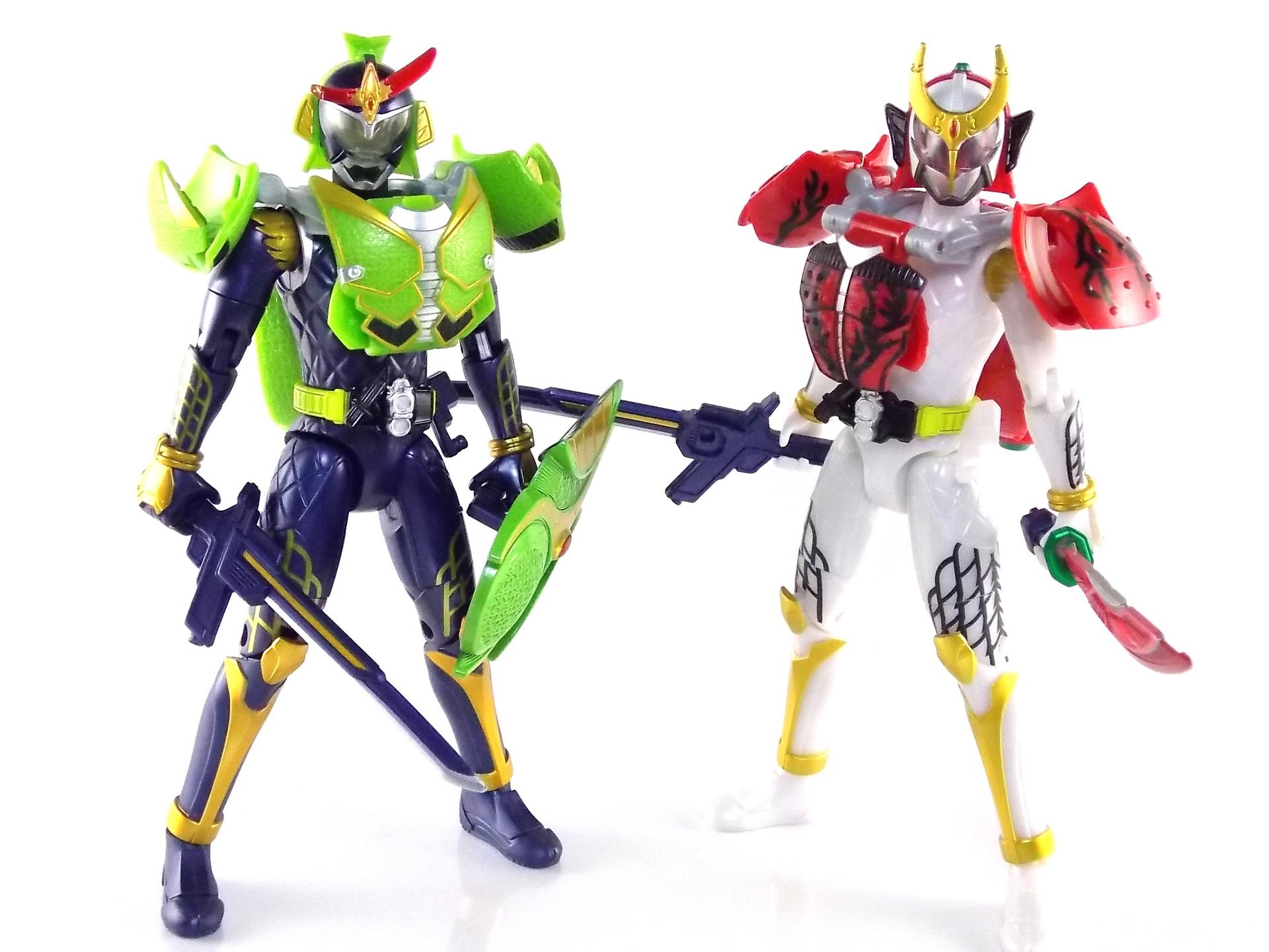 Ja no Michi, On Stage! After a long year of photos TokuNation has finally finished up it's work on the retail Arms Change line for Kamen Rider Gaim! But not to fear, Premium Bandai will continue to give us our fix for new fruity goodness with Premium Arms Change releases! Today we take a look at the first of several! ACPB01 Kamen Rider Bujin Gaim (Blood Orange Arms) is the first AC release from Premium Bandai and it's time we take a look at what Premium really means when applied to a mass retail toyline like Arms Change! Bujin literally means "Warrior God". Riders bearing that name exist in a Sengoku Era type world parallel to Gaims and possibly the other Heise rider worlds. In it this these Bujin Riders face off against one another in a Sengoku-esque war for territory and power. The 14 previous Heisei riders and some of their secondary riders all have counterparts in this world with identical suits, powers, and weapons. However one of these riders, Bujin Gaim, possesses special powers the other don't and his human form has never been seen. He shares similar traits to the Gaim we know but bears a blood red armor.... Remember that Post #2 contains images of the additional Arms Changes between Bujin Gaim and ALL other AC figures released thus far! Packaging Bujin Gaim is the first release in Premium Bandai's online exclusive series of Arms Change figures. As such it shares a similar style of packaging to the normal retail figures, but comes in a windowless box. This style of box has become the norm for most Tamashii Web Exclusive S.H. Figuarts as well so it looks like it's been carried over to Arms Change too. Outside of the window though the box is nigh identical to a standard AC box, just decked out in Bujin Gaim related material. Main Figure The first thing you'll notice here is that Bujin Gaim is basically just Gaim. (LOL evil repaints) Breaking tradition with a lot of evil repaints however Bujin Gaim is not primarily black. At a base body level Bujin Gaim is almost identical to Gaim. Basically from the neck down it's 100% the same. Unlike some of the other accessories in this set the base body didn't get much of a premium paint treatment. The heads are where the only differences exist. Compared to classic Gaim, Bujin Gaim has a blacked out mouth plate (later used on Jinba Gaim) and his head crest has been painted mostly in a metallic red. When compared to the other 5 types of Gaim bodies released thus far, you can see a pretty cool progression of new paint apps and remolds: Gaim Gaim (Suika dummy body) Bujin Gaim Jinba Gaim Kachidoki Gaim Kiwami Gaim Arms/Accessories In the accessories department, Bujin Gaim includes exactly the same ones that AC01 Gaim Orange Arms did. The only difference here is the paint job. And being that Bujn Gaim is the first of the Premium AC releases he indeed has a premium paint job. The Arms are correctly molded in the proper red to create an accurate Blood Orange Arms fitting for an evil counter to Gaim. A nice vibrant red marked with the evil black lines befitting of this dark rider. This paint scheme is of course carried over to the visor/helmet with the black lines creeping up the visor on a backdrop of nice metallic red. The Daidaimaru was Gaim's weapon and there's no creative evil name for it for Bujin Gaim, it's still the Daidaimaru. Just painted red. However this Daidaimaru benefits from the premium treatment because it receives the proper silver paint paint apps to give the blade an accurate "sliced" look! This is something that was missing on the standard Gaim release when compared to the TV footage. While the S.H. Figuart of Gaim included the silver paint apps for the Daidaimaru, Bujin Gaim is the first instance of it being applied to an Arms Change. The Musou Saber is entirely unchanged from those released with Gaim & Zangetsu however. Same mold, same paint apps. When fully equipped Bujin Gaim is appropriately evil and badass. With a few minor changes in paint scheme the generally heroic looking Gaim figure can be turned into the wonderfully devilish looking Bujin Gaim. As you can see it still retains all the same abilities and poseability of the original and will look great with your other AC's. Final Thoughts For their first outing with this new series of premium releases ACPB01 Bujin Gaim is a true winner. Though admittedly it would have been difficult to ruin the excellent fun of the AC01 Gaim mold, Bujin Gaim just feels like a more polished product than his retail counterparts. This figure is a perfect example of the quality we can continue to expect from the Premium Bandai Arms Change releases. Check back next Wednesday 8/13 for a particularly dangerrrrrousssssss Arms Change gallery & video review!
