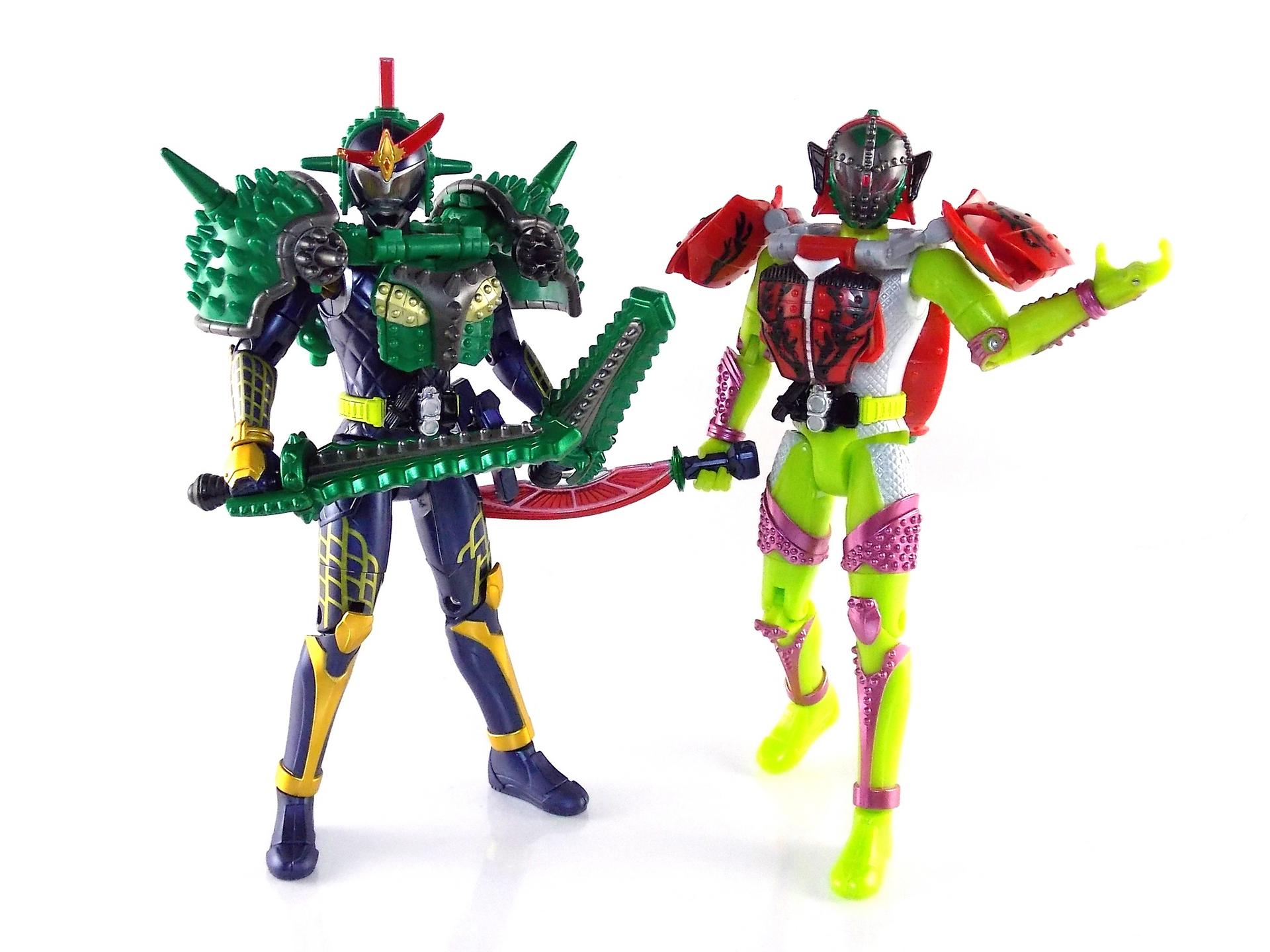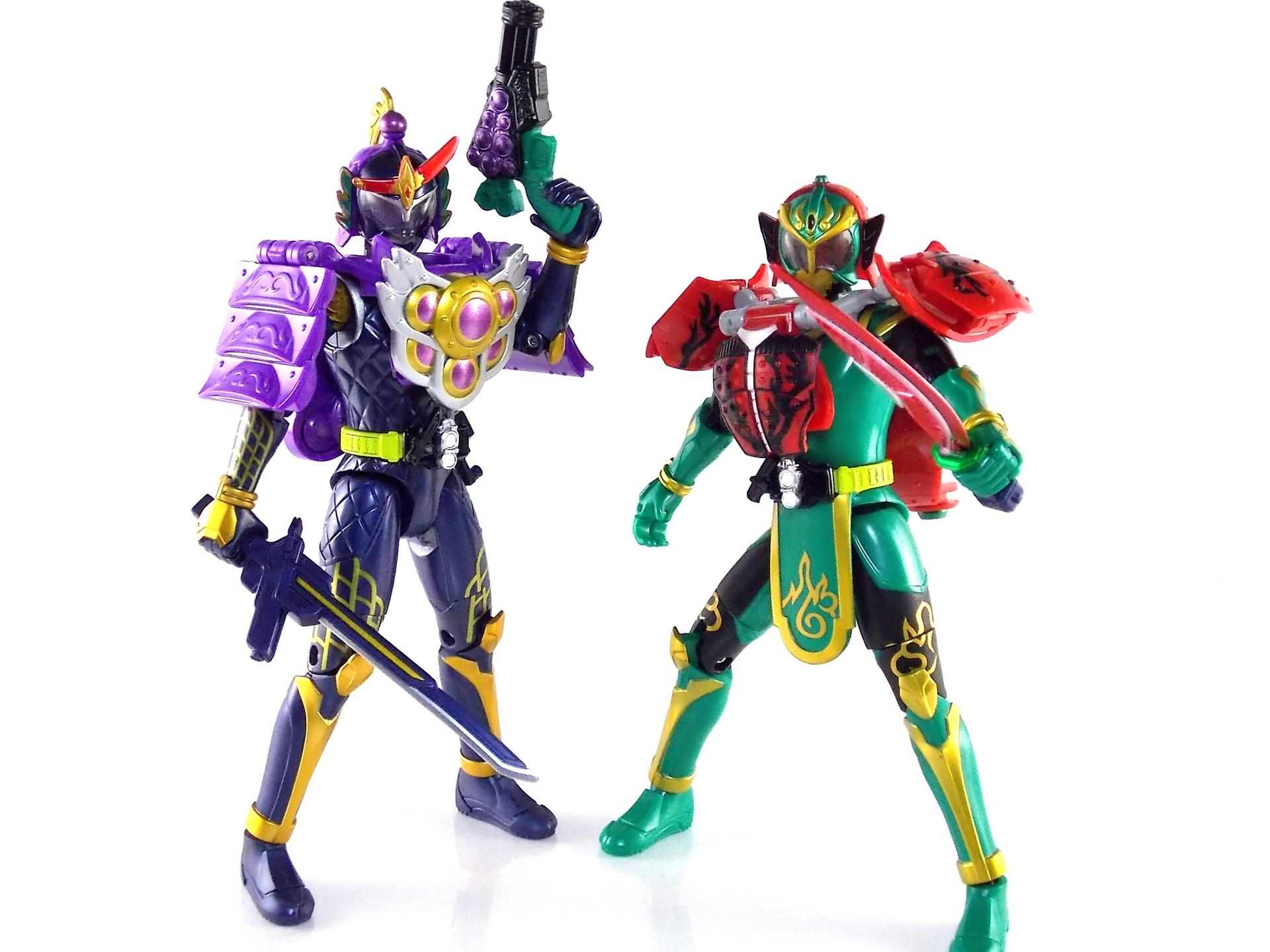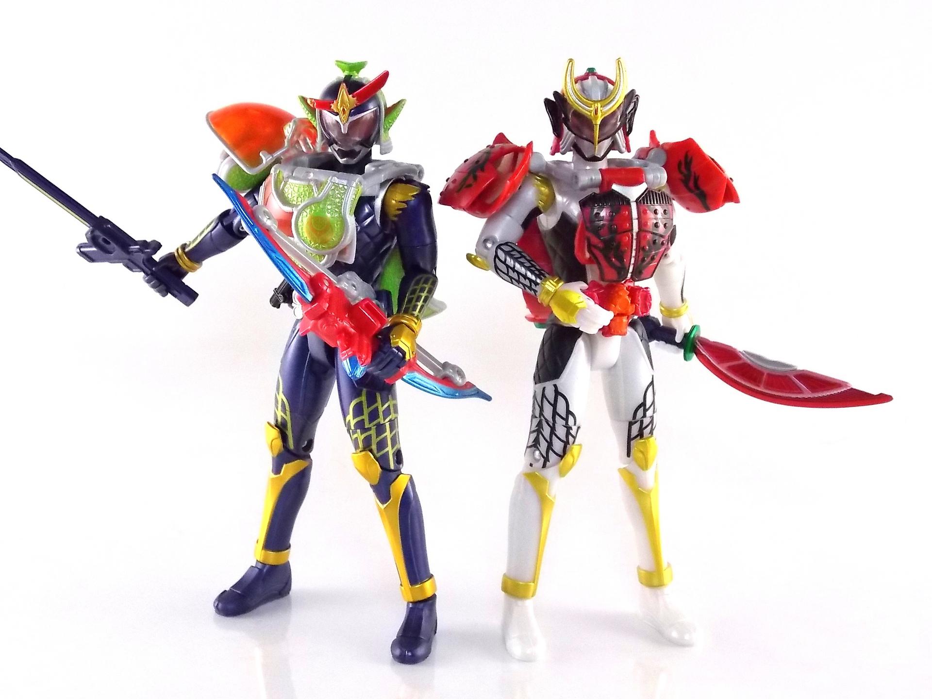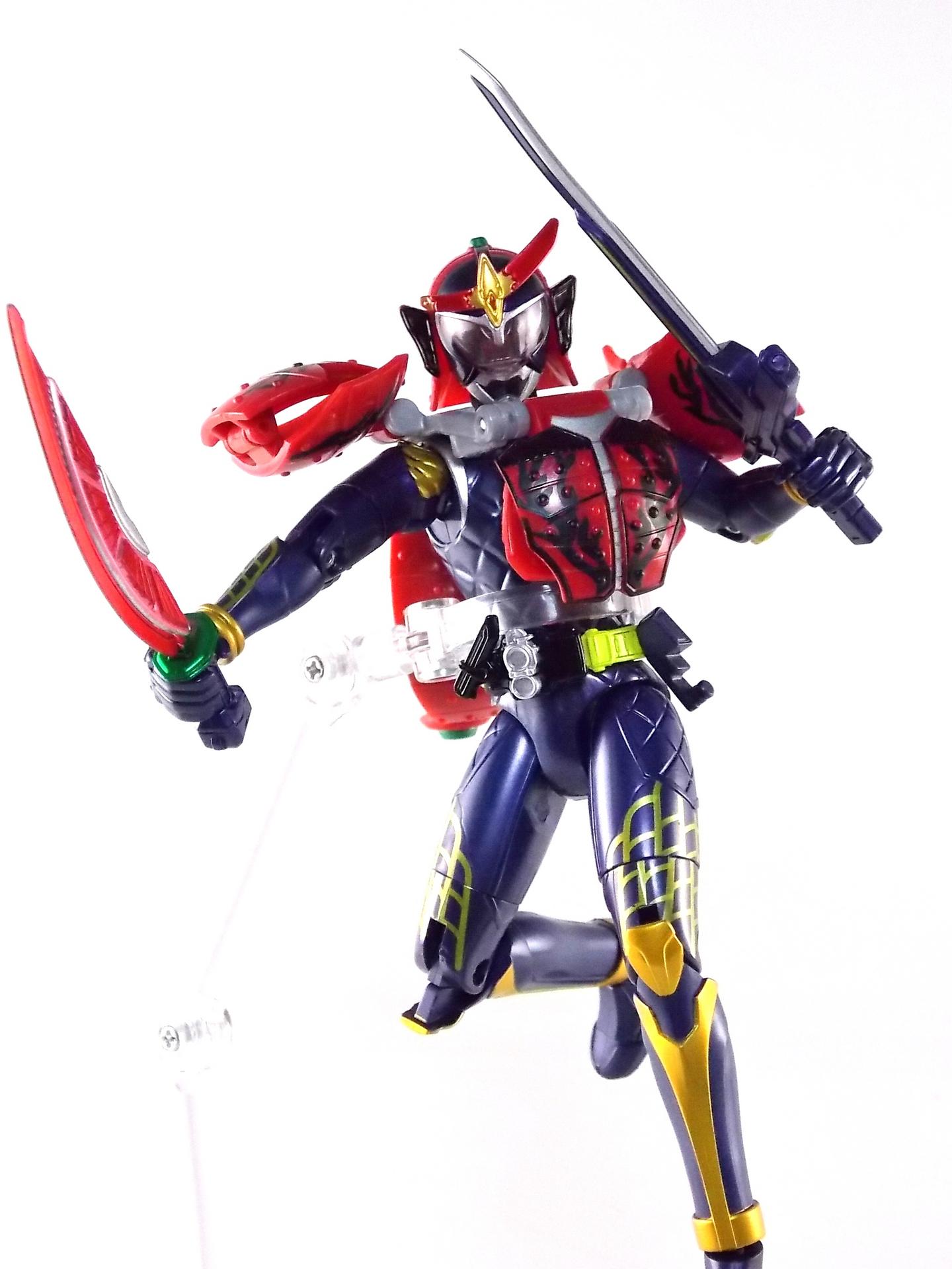 Ja no Michi, On Stage! After a long year of photos TokuNation has finally finished up it's work on the retail Arms Change line for Kamen Rider Gaim! But not to fear, Premium Bandai will continue to give us our fix for new fruity goodness with Premium Arms Change releases! Today we take a look at the first of several! ACPB01 Kamen Rider Bujin Gaim (Blood Orange Arms) is the first AC release from Premium Bandai and it's time we take a look at what Premium really means when applied to a mass retail toyline like Arms Change! Bujin literally means "Warrior God". Riders bearing that name exist in a Sengoku Era type world parallel to Gaims and possibly the other Heise rider worlds. In it this these Bujin Riders face off against one another in a Sengoku-esque war for territory and power. The 14 previous Heisei riders and some of their secondary riders all have counterparts in this world with identical suits, powers, and weapons. However one of these riders, Bujin Gaim, possesses special powers the other don't and his human form has never been seen. He shares similar traits to the Gaim we know but bears a blood red armor.... Remember that Post #2 contains images of the additional Arms Changes between Bujin Gaim and ALL other AC figures released thus far! Packaging Bujin Gaim is the first release in Premium Bandai's online exclusive series of Arms Change figures. As such it shares a similar style of packaging to the normal retail figures, but comes in a windowless box. This style of box has become the norm for most Tamashii Web Exclusive S.H. Figuarts as well so it looks like it's been carried over to Arms Change too. Outside of the window though the box is nigh identical to a standard AC box, just decked out in Bujin Gaim related material. Main Figure The first thing you'll notice here is that Bujin Gaim is basically just Gaim. (LOL evil repaints) Breaking tradition with a lot of evil repaints however Bujin Gaim is not primarily black. At a base body level Bujin Gaim is almost identical to Gaim. Basically from the neck down it's 100% the same. Unlike some of the other accessories in this set the base body didn't get much of a premium paint treatment. The heads are where the only differences exist. Compared to classic Gaim, Bujin Gaim has a blacked out mouth plate (later used on Jinba Gaim) and his head crest has been painted mostly in a metallic red. When compared to the other 5 types of Gaim bodies released thus far, you can see a pretty cool progression of new paint apps and remolds: Gaim Gaim (Suika dummy body) Bujin Gaim Jinba Gaim Kachidoki Gaim Kiwami Gaim Arms/Accessories In the accessories department, Bujin Gaim includes exactly the same ones that AC01 Gaim Orange Arms did. The only difference here is the paint job. And being that Bujn Gaim is the first of the Premium AC releases he indeed has a premium paint job. The Arms are correctly molded in the proper red to create an accurate Blood Orange Arms fitting for an evil counter to Gaim. A nice vibrant red marked with the evil black lines befitting of this dark rider. This paint scheme is of course carried over to the visor/helmet with the black lines creeping up the visor on a backdrop of nice metallic red. The Daidaimaru was Gaim's weapon and there's no creative evil name for it for Bujin Gaim, it's still the Daidaimaru. Just painted red. However this Daidaimaru benefits from the premium treatment because it receives the proper silver paint paint apps to give the blade an accurate "sliced" look! This is something that was missing on the standard Gaim release when compared to the TV footage. While the S.H. Figuart of Gaim included the silver paint apps for the Daidaimaru, Bujin Gaim is the first instance of it being applied to an Arms Change. The Musou Saber is entirely unchanged from those released with Gaim & Zangetsu however. Same mold, same paint apps. When fully equipped Bujin Gaim is appropriately evil and badass. With a few minor changes in paint scheme the generally heroic looking Gaim figure can be turned into the wonderfully devilish looking Bujin Gaim. As you can see it still retains all the same abilities and poseability of the original and will look great with your other AC's. Final Thoughts For their first outing with this new series of premium releases ACPB01 Bujin Gaim is a true winner. Though admittedly it would have been difficult to ruin the excellent fun of the AC01 Gaim mold, Bujin Gaim just feels like a more polished product than his retail counterparts. This figure is a perfect example of the quality we can continue to expect from the Premium Bandai Arms Change releases. Check back next Wednesday 8/13 for a particularly dangerrrrrousssssss Arms Change gallery & video review!