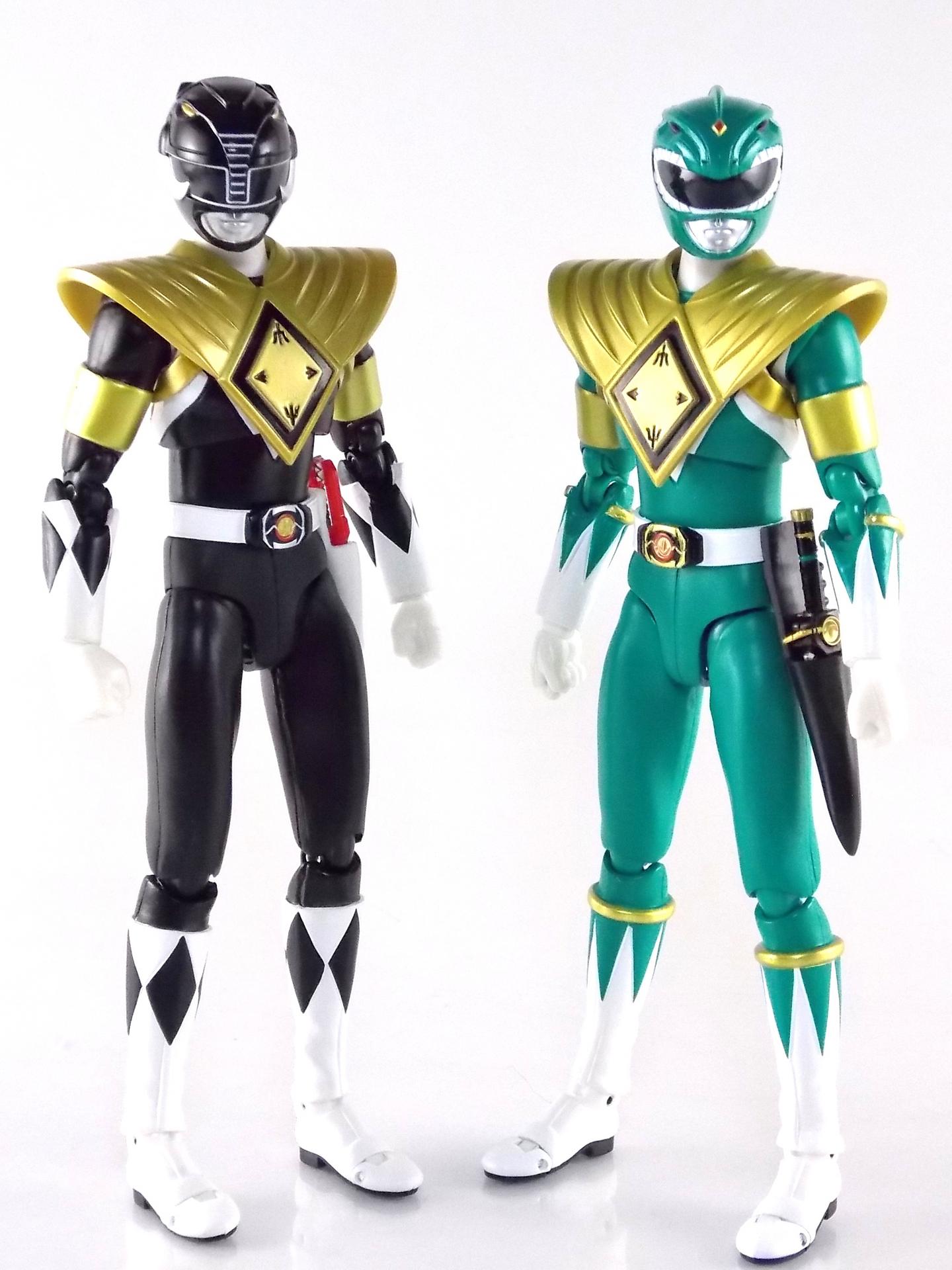Armored Black Ranger has a unique history in Power Rangers production. As the first season of Power Rangers was coming to an end around episode 40, Saban Entertainment wished to extend the series due to it's popularity. But they found they had run out of Kyoryu Sentai Zyuranger footage to use. So Saban contracted Toei to produce enough footage for 25 more episodes of the series for adaptation and eventually 20-ish of these episodes were used. Known to the fandom as "Zyu2" this footage was made entirely by Toei but for the US Power Rangers audiences. A contextual Zyuranger story line was given for the footage during production but as it was never aired in Japan it wasn't entirely necessary. We know that Burai would have returned from the dead to help his fellow rangers, and that this form would have likely been called Armed Mammoth Ranger. In the US this footage culminated in the final episode of season 1 for MMPR, An Oyster Stew. In order to protect Black Ranger from an acidic goo Green Ranger passed his Dragon Shield and it's protective power over to Zack. Resulting in this briefly seen but very awesome form. It's on screen for less than a minute but it made it's mark on franchise history as one of the most unique ranger forms ever. Shown exclusively in a US production but only ever seen in exclusively Japanese shot footage, this form is an oddity. And we love it all the more for it. Now onto the figure! Packaging As with the 8 Mighty Morphin Power Rangers related releases that proceeded it, Armored Black Ranger comes packaged in a similarly themed Power Rangers 20th anniversary box. So there's not much new to say here aside from the new stock shots of the figure on the box as well as the SDCC logo. Main Figure Very befitting of it's status as an SDCC Exclusive, Armored Black Ranger is an incredibly easy repaint of a pre-existing figure. Ever more befitting is that it's a straight repaint of S.H. Figuarts Dragon/Green Ranger. Literally this is the Dragon/Green mold painted Black, with the Black/Mammoth helmet slapped on. This things oozes the essence of SDCC release. And it's perfect. It's the kind of figure that diehards and completionists would love to have or those that feel the core team is all they need will be happy to pass on. The body is exactly the same as Green/Dragon Ranger & Armored Red/Armed Tyranno save for the new Mammoth themed head. It's the same sturdy well designed Zyuranger base body that we've gotten now multiple times in the US and Japan. If I had any complaints to levy against the figure it's the hips are ridiculously tight on mine. So tight in fact I fear breaking them. Funnily enough my SDCC Original Colors Vegeta I picked up at the same time as Armored Black, has ridiculously loose hips. The paint apps are also not as crisp as I feel an SDCC exclusive should be. Mune has some rather glaring paint over sprays. For the time and effort it took to purchase the figure, the QC is a bit lacking. Aside from these issues though the figure does look gorgeous. Accessories Included with Armroed Black Ranger is a smattering of various accessories, though not quite the selection I wish he had. This form literally appeared for less than a minute in the show. Long enough for Zack to stand up, do a flying punch at the Monster, then the scene cuts away. So no weapons were ever used in conjunction with this form. With that out of the way, here's what Armored Black Ranger comes with: 3 &1/2 - sets of alternate hands for various poses and to allow him to hold the included weapons. 1 - Blade Blaster in dagger mode 1 - Combined Ranger Slinger 1 - Power Axe in axe form. While certainly not a terrible selection of accessories, I do wonder why the Power Axe in Cannon Mode wasn't included. Commonly people confuse the two forms as being 1 in the same. But the Cannon form has the butt of the axe molded in the proper position at the base of the barrel. While it also prepares the weapon for the Power Blaster/Howling Cannon combo, it's also the correct way to represent this individual weapon's second mode. I know you can display it as I have here like it's the Cannon mode, but the OCD in me will always remind me that it isn't. That version of the Power Axe/Moth Breaker only comes with the Japanese exclusive S.H. Figuarts Tiger Ranger or the US exclusive Yellow Ranger. Being that this is an SDCC exclusive which was sold at a premium with a rather deep line to wait through to get it, I hoped it to have a few more goodies like the cannon mode Axe thrown in, possibly the non-combined version of the Thunder Slinger or the other modes of the Blade Blaster. As is the figure still includes enough to enjoy it immensely. Final Thoughts It's been a LONG journey to get to this point. When S.H. Figuarts Dragon Ranger & Tyranno Ranger were released as a part of Akibaranger Season 2 who'd have thought this line of figuarts would culminate in a US convention exclusive? And what a fitting way to end the line. What began as 2 Japanese releases that came with parts that spoofed MMPR for alternate combos ends with a form filmed in Japan, for American exclusive MMPR footage. S.H. Figuarts Armored Black Ranger is very likely the final entry in the Zyuranger/MMPR line of releases and it really is a winner. It's exclusive nature made it a bit harder to obtain. Thankfully for those who missed out on it's SDCC releases Bluefin also had stock on hand for sale at the recently wrapped Power Morphicon 4. Though it's probably the end of this series of releases I had a few ideas for things to help Bluefin/Tamashii continue it. I'm sure there are plenty of people like me who'd love to see Overdrive Defender Vest Black Ranger from the Once A Ranger crossover right? A shieldless Green/Dragon Ranger? Or even the "Green Samurai Ranger" combo that Hector David Jr. and Jason David Frank came up with while filming Power Rangers Super Megaforce's finale. To tide myself over to when/if such things ever get made, I made customs of eac
