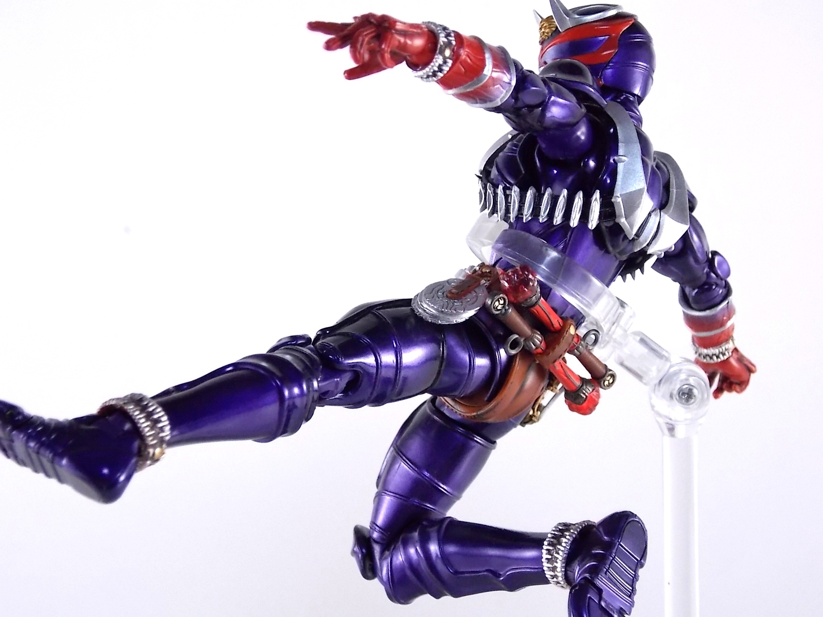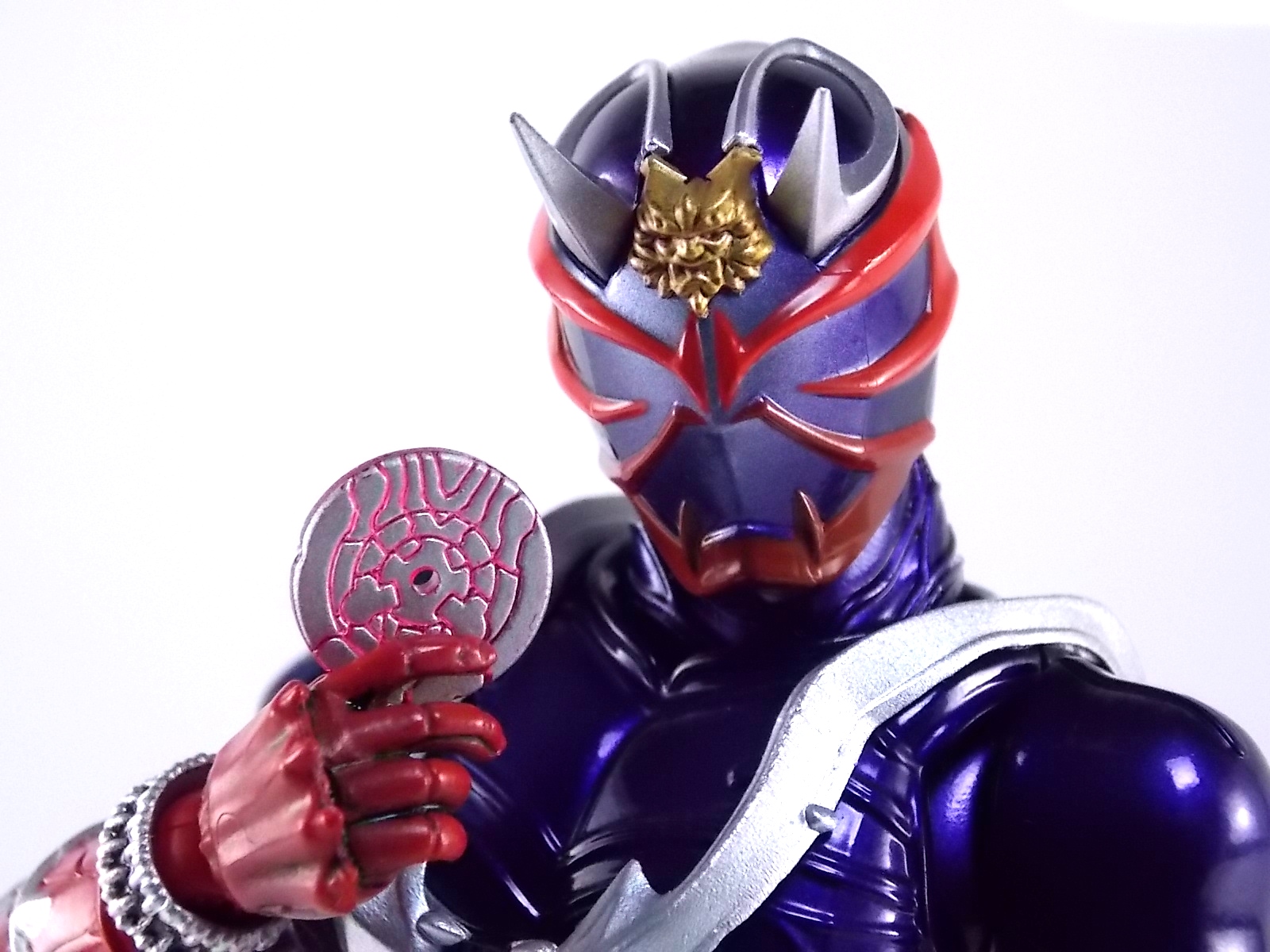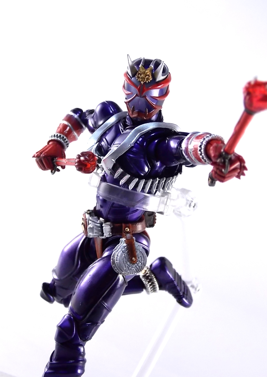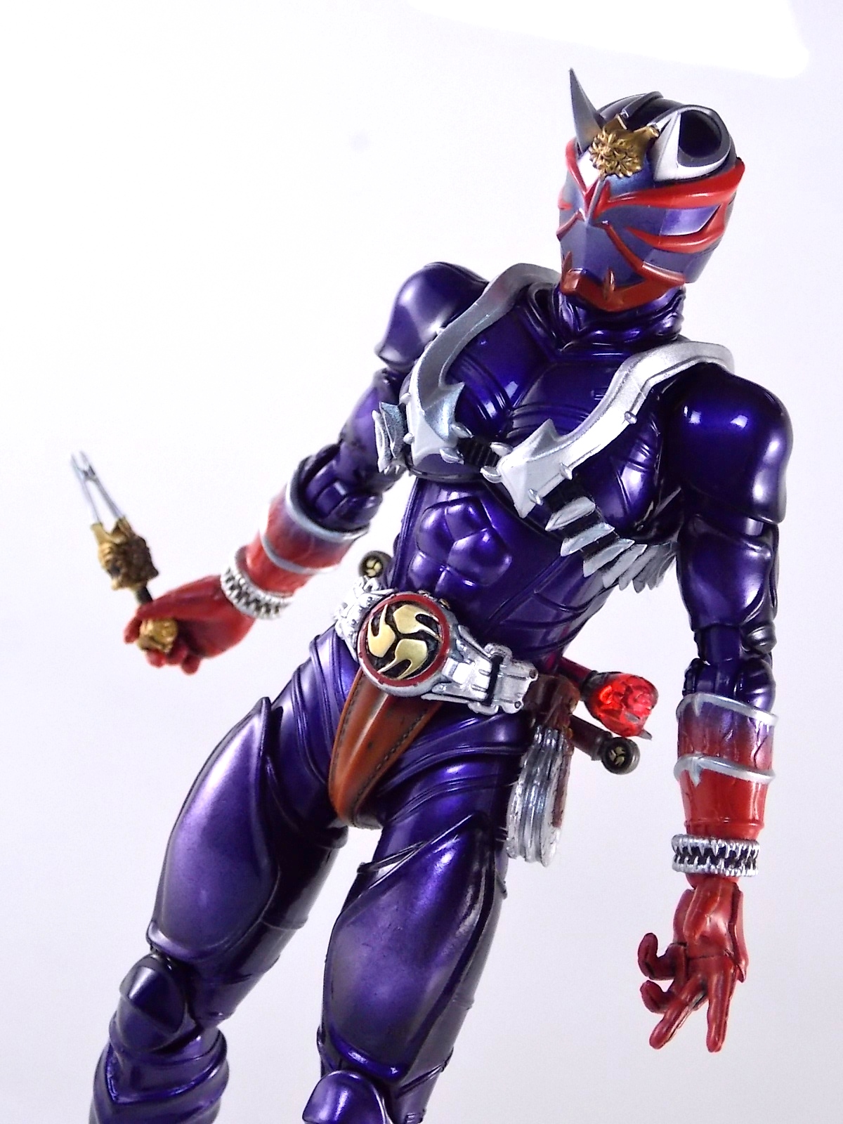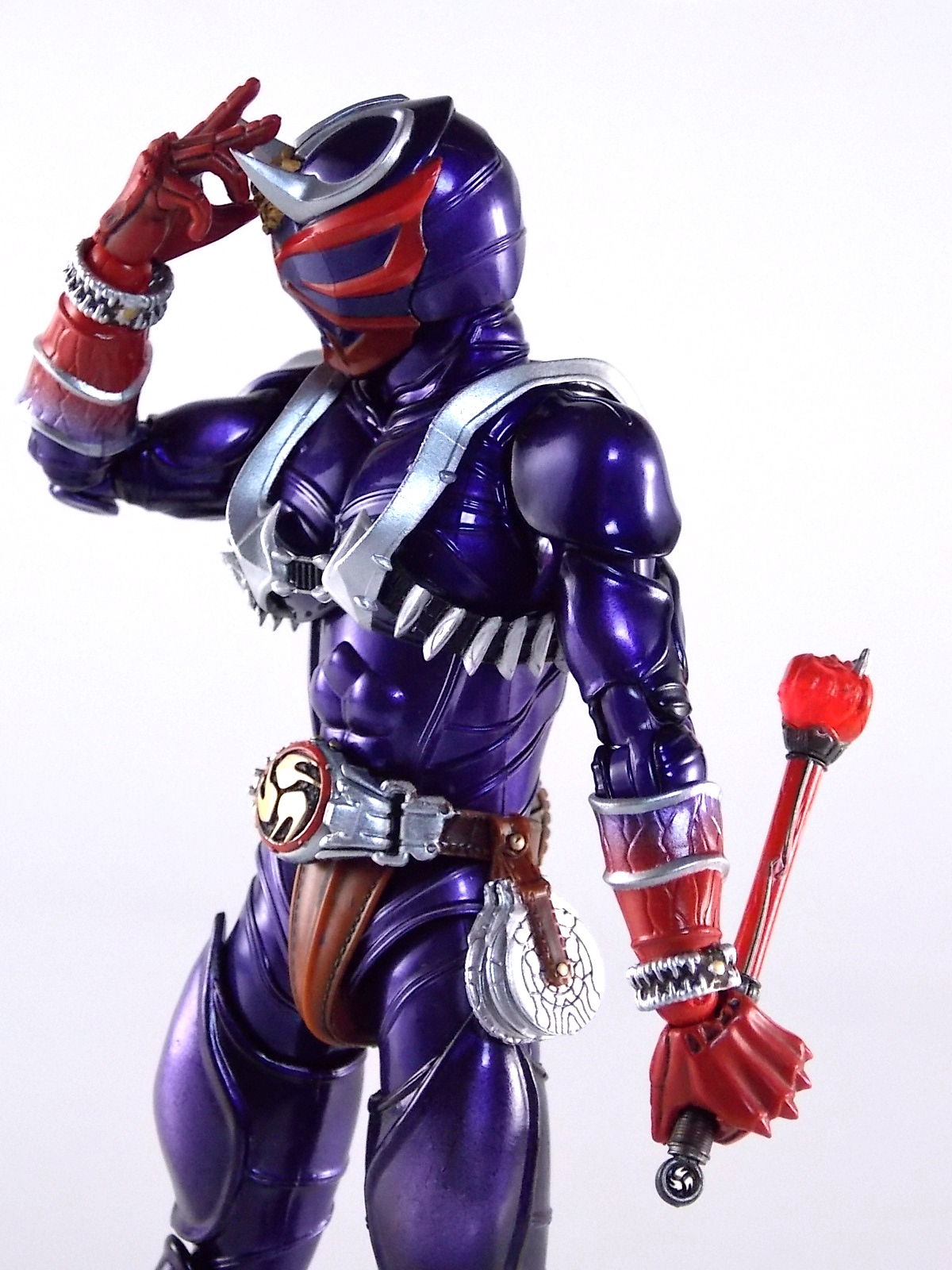 A long time coming, S.H. Figuarts Kamen Rider Hibiki finally makes his appearance! After many years of this line continuing without all the main riders, we're one step closer to having them all! Released in the same premium style as the recent S.H. Figuarts Kabuto Renewal Hibiki aims to deliver an incredible product and for the most part it succeeds. Let's take a look at exactly what this figure is like. Post #1 contains 40 images with over 30 more in post #2! Packaging S.H. Figuarts Hibiki comes in identical packaging to Renewal Kabuto. The exact same type of rectangular box, with stacked white plastic trays. It's a little odd that Hibiki would be given the same premium treatment Renewal Kabuto was, considering this is the first SHF Hibiki to be made. So far these two figures are the only ones to feature this packaging which seems odd, we'll see if it continues down the line. Main Figure First things first, Hibiki is drop dead GORGEOUS. The sculpting on this bad boy is absolutely perfect. In every way imaginable it captures the look of the on screen suit right down to the textured musculature. The details are near perfection. Seriously I can not say enough about the new sculpting process used for Hibiki that was first introduced on Kabuto Renewal. Like Kabuto we see from the included concept book that the sculpt for this figure began from the ground up with a skeletal inner frame. And that extra work really pays off, especially when compared to other main line S.H. Figuarts. The only issue I really have with Hibiki, which is isolated to the one I have, is errant paint applications. Just above his belt on mine there are several significant splotches of silver. And there's another on his inner thigh. Based on how tight some of the joints are I think it's safe to say that the purple paint all over the figure may flake off over time as well. The thighs/hips and upper body were pretty darn tight too. The interesting new hip design makes me think they could break pretty easily as well. But that's just catious speculation on my part, it really feels like there could be issues with the figure down the line. As is, the main body of the figure looks gorgeous. Again it really does look incredibly faithful to the onscreen counterpart. The articulation is pretty superb as well. The way the shoulder pads unhinge up and over the shoulders themselves, the innovative way the hips angle out with a filler piece that fills the gap (itself reminiscent of Toy Biz Marvel Legends joints), and the traditional peg style hands with pretty open wrist cuffs that won't hinder their movement. It should be noted that Hibiki DOES NOT use the "figma style" wrist peg system that Kabuto Renewal does. It has the traditional ball jointed wrists that nearly all Figuarts do. So far the only releases that have featured this new system are Kabuto and the Anti-Piracy figures. I am hugely thankful of this. The peg system introduced with Kabuto is in my opinion pretty terrible. I'm very happy to see a return to standard ball joins again. Accessories S.H. Figuarts Kamen Rider Hibiki is fully loaded! Aside from the excellent sculpt of the figure it's also armed to the teeth with accessories. Including much more than the pre-requisites of more standard fair releases, the accessory count is what really bumps Hibiki into the premium SHF territory. Included with Hibiki are: 4 - sets of alternate hands. As usual this gives you all you need for nice static, dynamic, and signature poses, including the perfect pair for Hibiki to hold his weapons. 2 - different sets of Ongekikou Rekka. One set molded into a holster. This set can be plugged into the back of his belt in place of the standard "empty" holster pouch. The second set of Ongekikou Rekka are magnificent. These full fledged versions of the weapons slide into Hibiki's holding hands and actually looped around the forefingers just as the real rider himself would hold them. They really are excellent. 2 - flame effect parts for the Ongekikou. To use them you need to pop the head of each Ongekikou off and pop these on. These flame effects look fantastic and really help the figure pull off it's dynamic look even better. Great for dynamic shots and poses. 2 - different versions of the Onkaku Tuning Fork. One version is molded in a folded down position to be plugged onto the right side of the belt in the same manner the Ongekikou on the back. The second Onkaku is the proper unfolded version for the figure to hold in hand. Though I don't feel any of the included hands can really hold it that well. 1 - Disk Animal holster molded with the appearance of 3 discs in it. Again meant to be plugged onto the belt in place of the bare plug that's normally there. 3 - Disc Animals in disc form. Though they don't transform, at this scale I'm not sure that would be possible. They'd almost certainly break. As is they look really nice for their size/sculpt/Paint. The 3 you get are Steel hawk, Azure Wolf, & Green Ape. So as you can see, Hibiki gets a boat LOAD of accessories. Seriously this is basically everything he could possibly need. These accessories really make it the premium release it should be. As a bonus the the Ongekikou Kaentsuzumi buckle on his belt can also be removed to replicate at least the first part of the Ongeki Da finisher. The figure should have included a giant version of this accessory but that's a bit of a dream honestly. You can always pick up the old Final Form Rider Hibiki to replicate it if you wish. Final Thoughts S.H. Figuarts Kamen Rider Hibiki really does feel like just as much of a Premium release as Kabuto Renewal did. Though mine suffers from some unfortunate QC issues, don't let that affect your opinion of it. It really is an excellent figure. It has the sculpt down perfectly, and for the most part the paint apps are incredible. It has a wealth of accessories that really are just incredible. With Hibiki's release we are now officially 1 rider away from having ALL the Heisei 