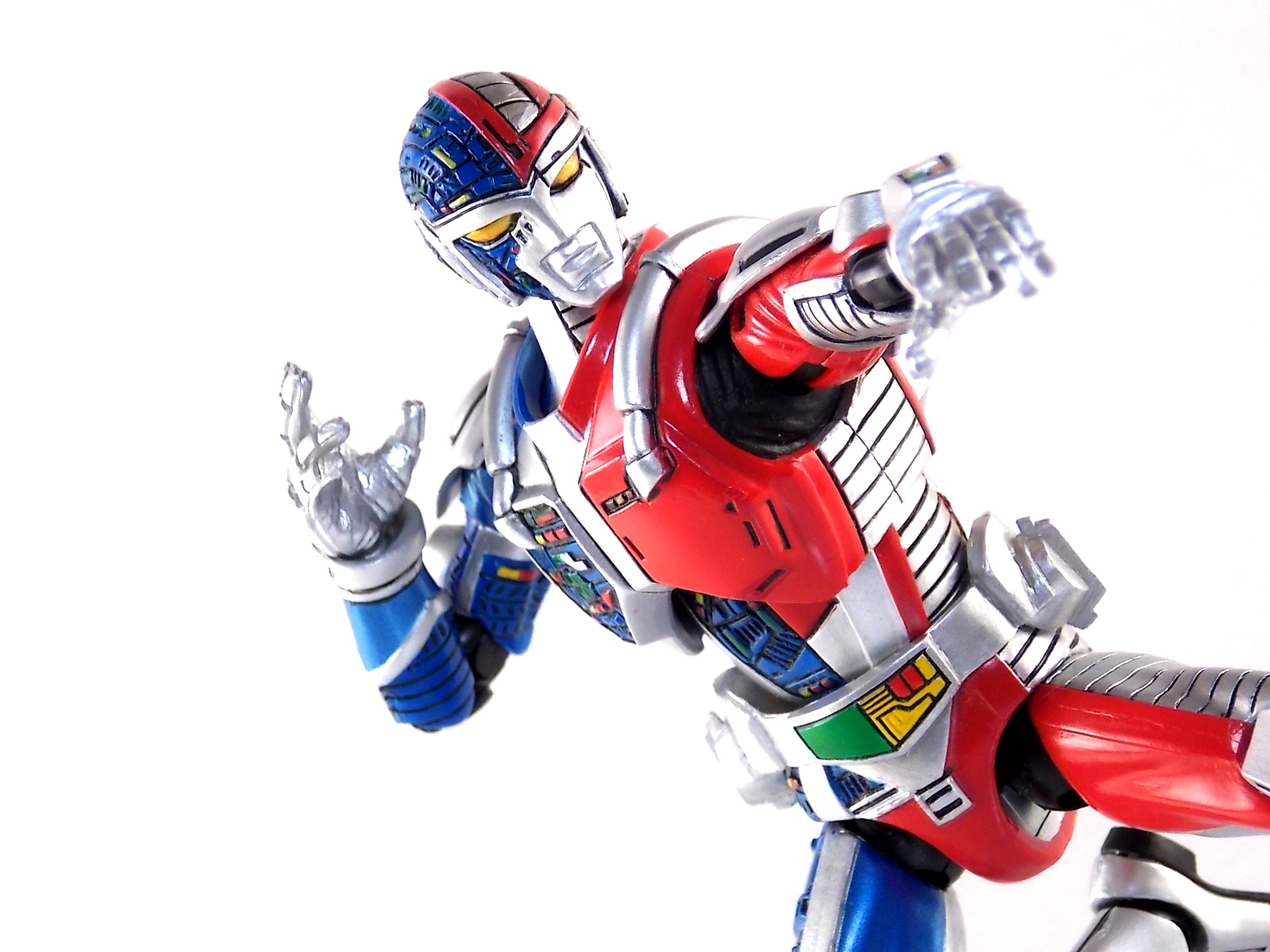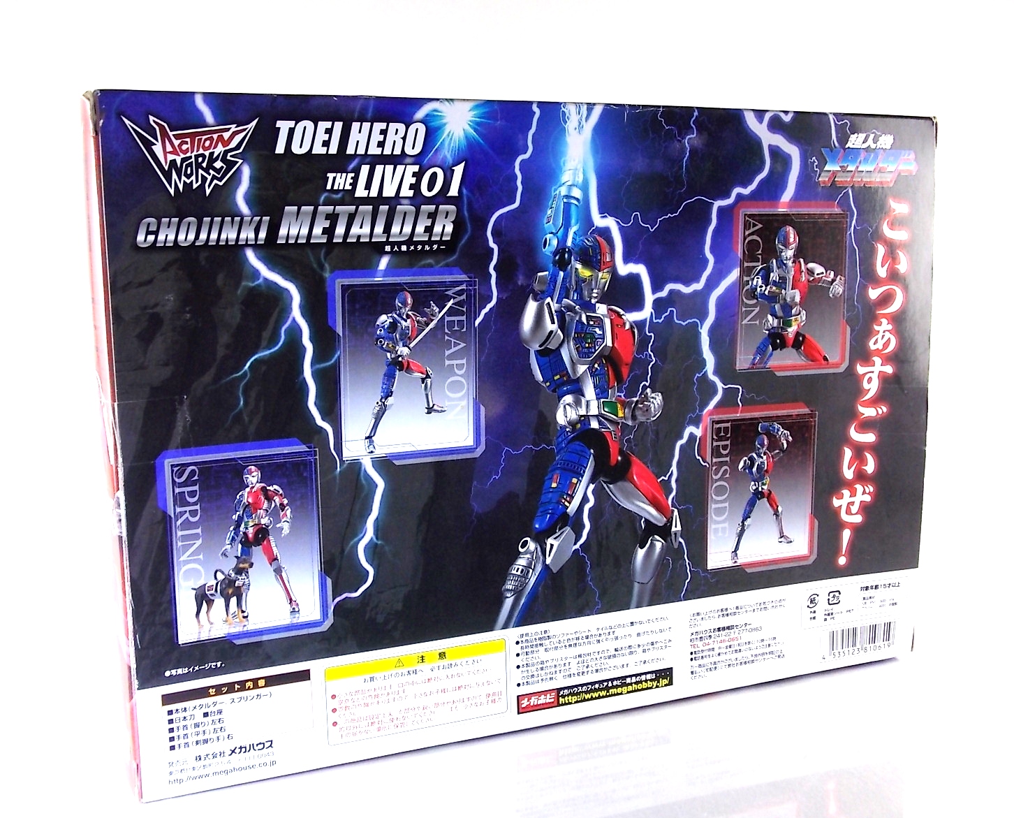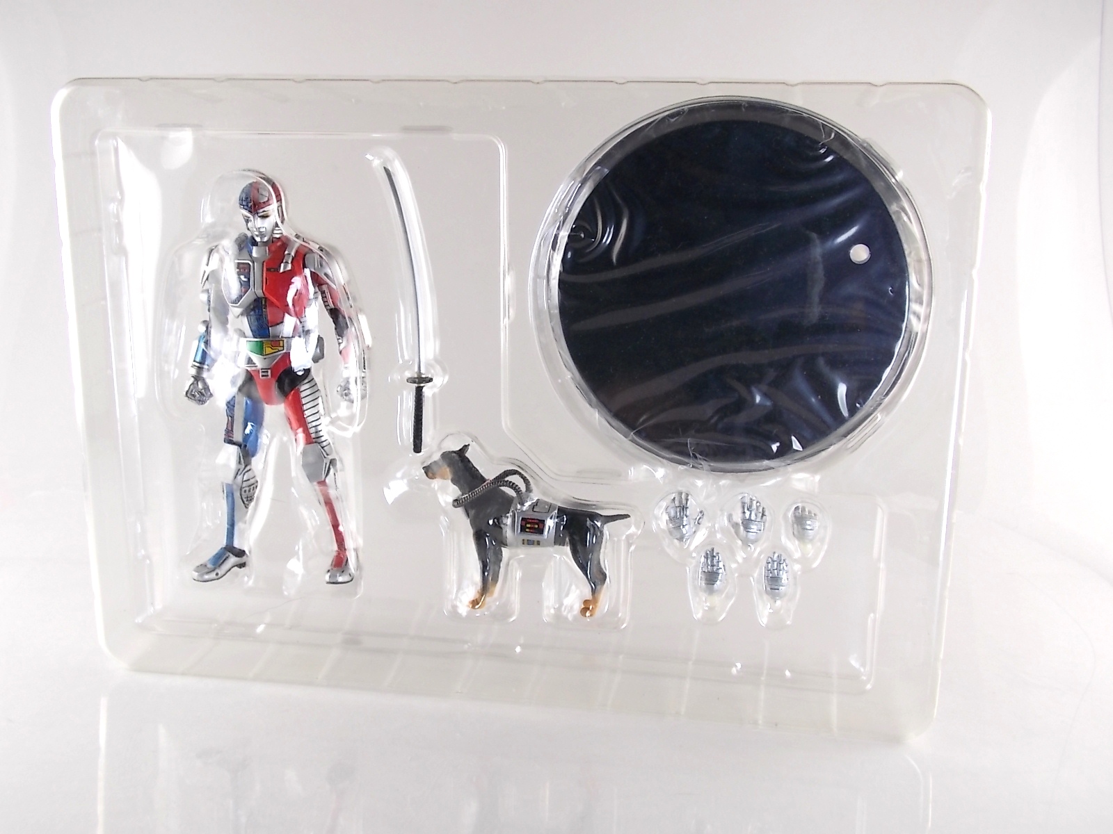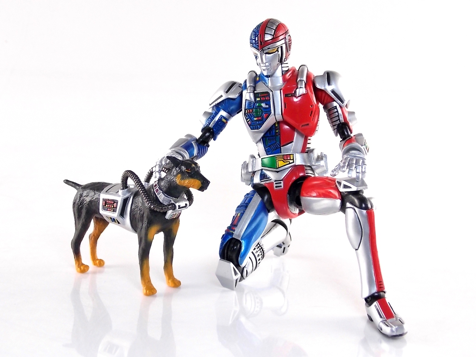 Metalder footage was used for the character Ryan Steele primarily in season 1 here in the US. But since Metalder is the shortest of the Metal heroes shows, a mere 39 episodes, season 2 began utilizing Shaider footage for Ryan's new upgraded form. Despite quite a bit of fan support here in the US VR hasn't gotten a ton of love over the years though. Especially in the figure department. Much like anything that isn't Power Rangers it's been cast to the wayside a bit. But a few years back there was just enough residual love for Chojinki Metalder left in Japan to produce this figure, Action Works Metalder! Action Works was a toy line competitive to S.H. Figuarts in design at least. Since the two focused on different genres they didn't compete in quite the same way you'd think. Sort of borrowing elements from Bandai's SHF line, Action Works were produced by Megahouse. That is until Megahouse was acquired by Bandai Of Japan. Until they were acquire this line had become a home of sorts for high end Metal Heroes releases including the 3 Space Sheriffs as well as Metalder and even Winspector. But Metalder was the first metal hero released by the company as Toei Hero The Live 01, and even by today's standards, this figure rocks. Here's why. Packaging For starters Action Works came in much larger style boxes than S.H. Figuarts of today do. These releases were more of one offs each time rather than part of an overarching merchandise line. Metalder is the 2nd largest in the packaging department, only being outclassed by the massive Winspector 3-pack. But it's a glorious box evocative of the figure inside with plenty of nice stock photos and a great insert piece for the back of the inner package. Main Figure As I mentioned before Action Works are sort of like figuarts but they were actually better than the first couple years of Figuarts offerings in terms of design and accessory count. These figures were wonderfully sculpted, generously articulated, and included tons of accessories (more on that in a minute). As you can see from the images below Metalder looks damn nice. It really captures the actual character quite well. Now I know there are some glaring black joints there but you have to remember that this figure is from 2009. And yet it still holds up nicely with today's S.H. Figuarts. Joint aesthetics aside they're meaningfully placed. Metalder can pull off some nicely dynamic poses including his most signature ones. Though some Action Works Metalders have become loose over time this one is still in fine working order. A very nice additional feature here is the intentional ability to remove Metalders arm at the bicep for him to hold it as a weapon. That's right folks, in show Metalder has literally beaten enemies to death with his dismembered arm and the toy faithfully replicates it. Automatically goes in the win column. If the articulation wasn't enough to sell you just look at the paint and intricate detailing on this guy. It's just incredible that a toy like this has been around since the early days of S.H. Figuarts and sometimes we still don't get modern SHF's with this level of detail. For those wondering Metalder's 2-tone appearance was meant as an homage to one of Shotaro Ishinimori's earliest creations, Kikaider! The red/blue split design is no coincidence at all, this guy is a blatant homage, right down to him being a robot with a human form rather than a "hensin hero". He even has a motorcycle with detachable side car and plays Jazz Saxophone for fun! Accessories As with all Action Works figures, Metalder comes with everything he could honestly need. Included here are: 5 - additional hands for various action poses. It should be noted that this type of hand has the ball joint attached to the hand itself rather than to the wrist peg allowing for a greater range of movement. Honestly I love this hand system but I can see where it's probably more of a gamble breakage wise, though I've yet to encounter such a problem. 1 - Action Works display base. No these aren't as fancy as modern Tamashii stages but they get the job done and peg directly into the figure. The only downside is that they aren't quite tall enough to leave the figure in a static standing pose when plugged in. They really only work for action shots. 1 - Katana. A seldom used but specific weapon of Metalder's. Including weapons like this is something I greatly appreciate. It may not be something he uses every episode or even more than a hand full of times, but I love having it. Sidenote, the Space Sheriffs released in this line came with multiple energized and standard versions of each of their Laser Blades. 1 - Springer! That's right, Metalder comes with a robot dog, not to be confused with that pesky Transformer! Springer was Metalder's trusty older brother. Built by their creator before Metalder, Springer guards the Silver Caucus base where Metalder operates from. He can even speak human language! Jeb the dog from VR Troopers was based on Springer though he wasn't cybernetic. Though this Springer figure isn't articulated, it's wonderful detailed bonus ton include with Metalder. Final Thoughts If you can't tell, I love this figure. I've owned a few Action Works releasese over the years and this one is by far my favorite right now. For figures released during the early days of the S.H. Figuarts line, Action Works do not disappoint. I've vocalized my disappointment so far with the poor QC of the Space Sheriffs released in the SHF line as they just don't hold up as nicely as their older counterparts. I love Action Works Metalder to pieces. If an SHF was announced I'm not entirely sure I'd need to buy it unless it at least came with everything seen here. But as the SHF line brings more Metal Heroes into the fold like the forthcoming Blue & Black Beet there's always a chance for a Metalder release. In any case if you can find Action Works Metalder I HIGHLY recommend him. He not only is an excellent toy but he fits in perfectly with y