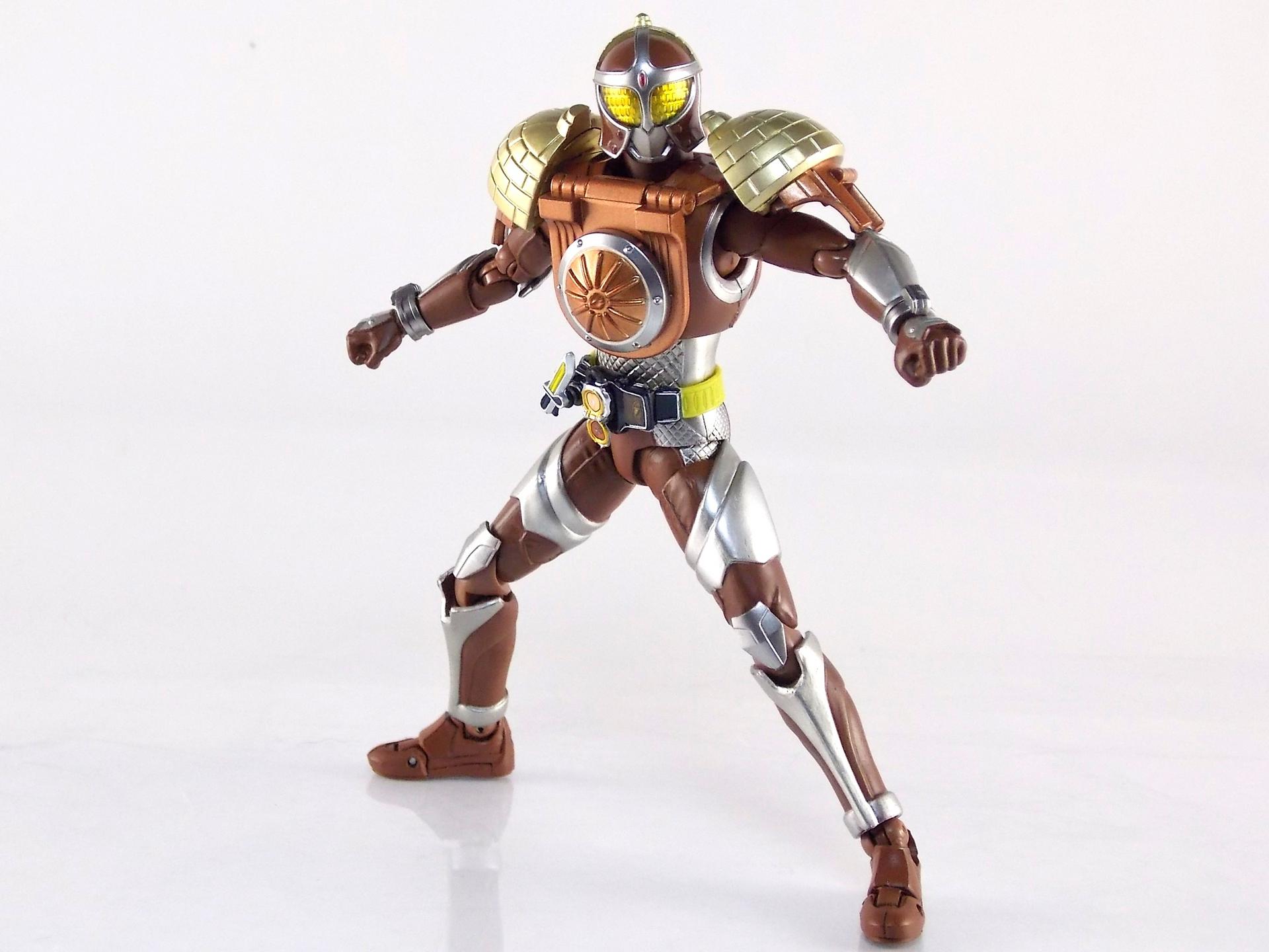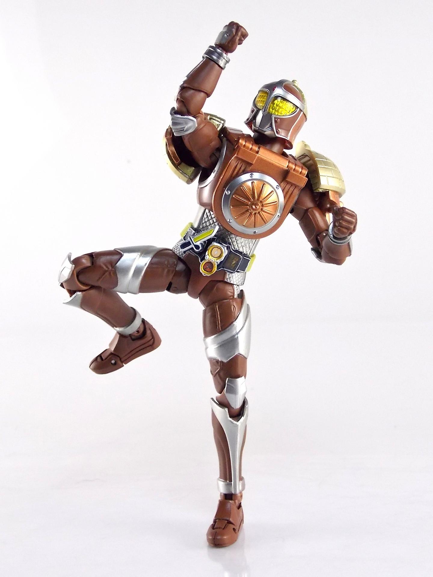 Our Gaim celebration continues today with a few posts dedicated to the Nut Bros of Kamen Rider Gaim. And this one's dedicated to S.H. Figuarts Kamen Rider Gridon! **Note: Post #2 contains additional images. Packaging As I've said in many reviews recently, Tamashii Web Exclusives & Premium Bandai Exclusives tend to all come in windowless boxes now and Gridon is no different. Not much to say about this since it's more or less becoming standard. But it is a pretty damn nice looking box this go around. Main Figure As with the previous Gaim Figuarts releases, S.H. Figuarts Gridon is gorgeous at even a basic level. As figures from the same lines generally do, these figures share some design elements at a basic level as well. Though this isn't nearly as apparent as it was for say the Arms Change line of figures. Though as with the Arms Change, much of the basic sculpt for Gridon comes from Baron. Also much like Baron, Gridon has some pretty big shoulder pads to work with. Though here they function much better. The cutouts on the underside of them allow his arms a bit more freedom and flexibility compared to Barons. And because they aren't as cumbersome and large they angle up much more. From there on Gridon has a pretty fantastic range of movement much like Gaim's. Though he doesn't have a Muso Saber on his hip like Gaim to hinder anything so really it's almost like this figure has an even better range. This excellent freedom of movement truly helps capture the funny spirit of Gridon as he can really pull off some great poses. It should also be mentioned that the colors on Gridon are also spot on. In particular the visor on his helmet is really well done. Much more so than Arms Changes, the Figuarts of these characters really capture the inset visor details. Gridon's almost looks like a honey comb it's so nicely sculpted and painted. Also the Donguri Lock Seed on his belt is removable like previous figures in this line and it along with the Gridon rider indicator face plate are magnificently detailed for things at this scale. Accessories As is often the case with Web Exclusives, Gridon is a bit lite on the accessories. He comes with: 2- pairs of alternate hands. Not a wide variety here but enough to get the gist of some of Gridon's more comedic moments 1- Closed Donguri Lock Seed. I always apprecaite these closed Locks being included but I have to say I never do much with them except take a few in hand shots. For me at least it's just one more tiny accessory to lose. 1- Donkachi hammer type weapon. This thing is gorgeous. Like all the SHF rider weapons released thus far the Donkachi looks perfect. Compared to the Donkachi included with AC Gridon this one blows it out of the water. All the details are there, even down the grip of the hammer. With this Gridon is ready to whack some moles! And Invess. So although the selection seems sparse, nothing really comes to mind that this figure should have included that it doesn't have. Maybe an alternate silver belt strap? But that's more of a nit pick non-essential. It's got the essentials at least, and for me that's good enough. Final Thoughts In closing, it's wonderful to have another Gaim rider to add to the collection. As the Arms Change line progressed we were all enamored with the ingenuity put into those figures. Now we marvel at the the intricate detail of their SHF counterparts. Initial images of this figure had me skeptical of it, but in hand it really is great. And it's nice to have another brown rider, there are very few of them and this color really works. Each line, AC & SHF, has it's fans and critics but I've gotta say that in my book S.H. Figuarts Kamen Rider Gridon Donguri Arms is another winner.